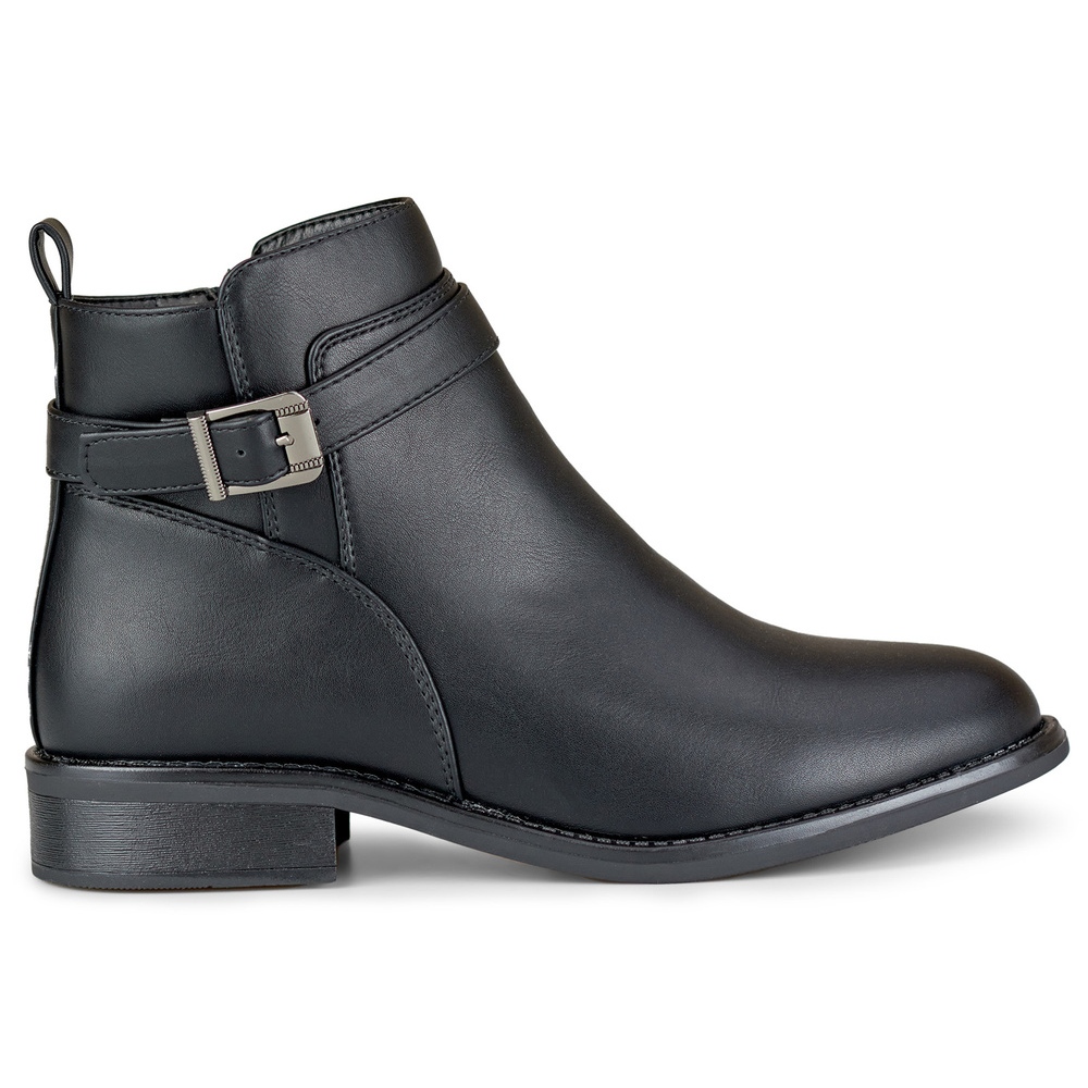 Snygga, tidlösa stövlar gjorda av ekologiskt läder i universellt svart. Modellen för fotled med ett enkelt, smidigt snitt med en rund näsa och en platt sula ger en elegant look med maximal bärande komfort - perfekt för hösten/vintersäsongen.