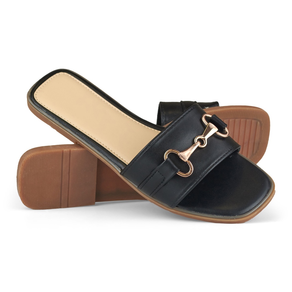 Svarta eleganta kvinnors tofflor med spänne - stil och komfort varje dag