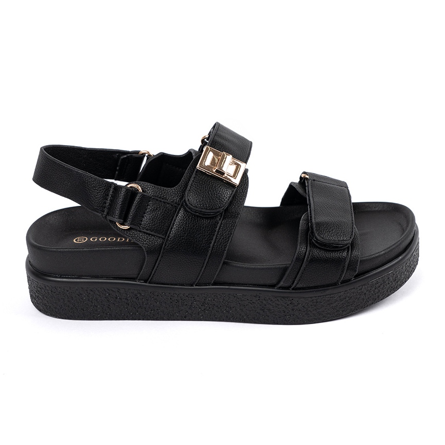 Vi presenterar svarta sandaler på plattformen från det berömda varumärket Goodin, som kombinerar elegans med exceptionell komfort. Dessa snygga kvinnors skor är ett idealiskt förslag för vår- och sommardagar, som arbetar perfekt i många situationer, från avslappnade möten till mer formella utflykter.