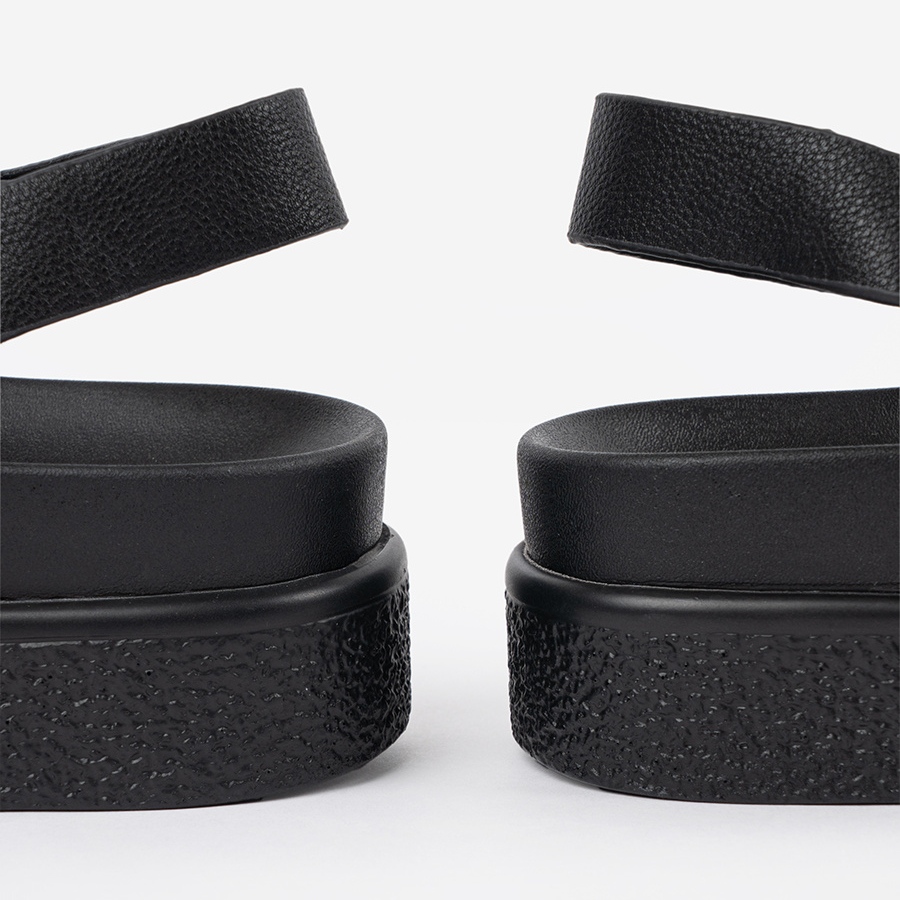 Det klassiska snittet av svarta sandaler gör dem till ett perfekt komplement till olika stilar - både eleganta klänningar och avslappnade uppsättningar med jeans. Tack vare den funktionella fästningen på spännet kan du enkelt justera dem till foten och garantera dig själv rätt stöd.