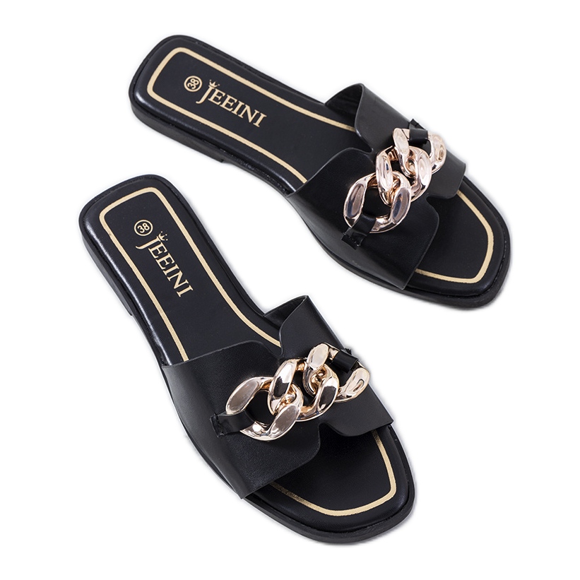 Detaljer: Svarta eleganta tofflor med kedja Mary