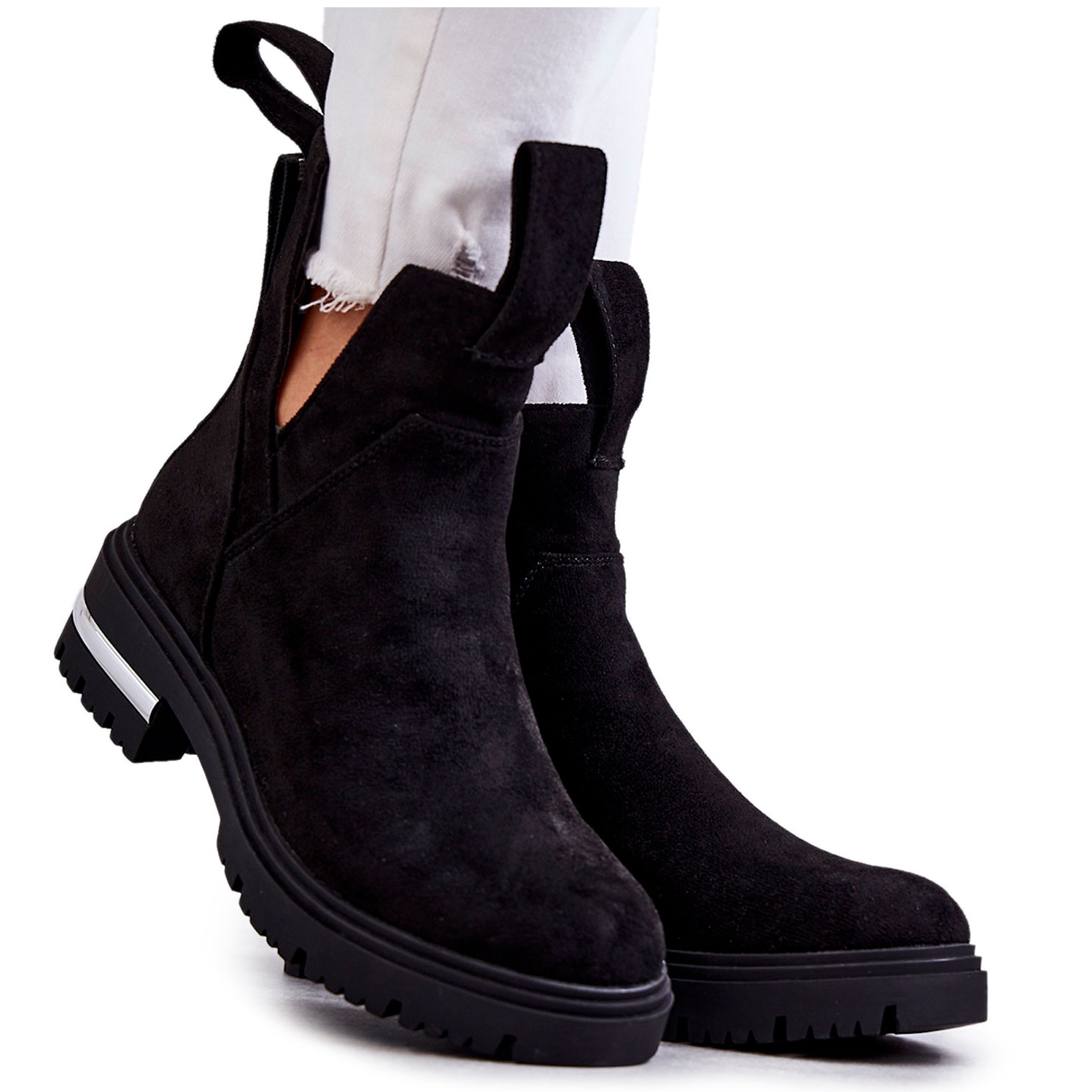 Upptäck elegans och komfort med PS1 stövlar i mocka för kvinnor med utskärningar i en klassisk svart nyans. Dessa snygga skor, gjorda av högkvalitativ ekomocka, är ett perfekt val för alla tillfällen. Iögonfallande utskärningar på sidorna av ovandelen ger dem karaktär, och öglor fram och bak gör dem lättare att ta på.