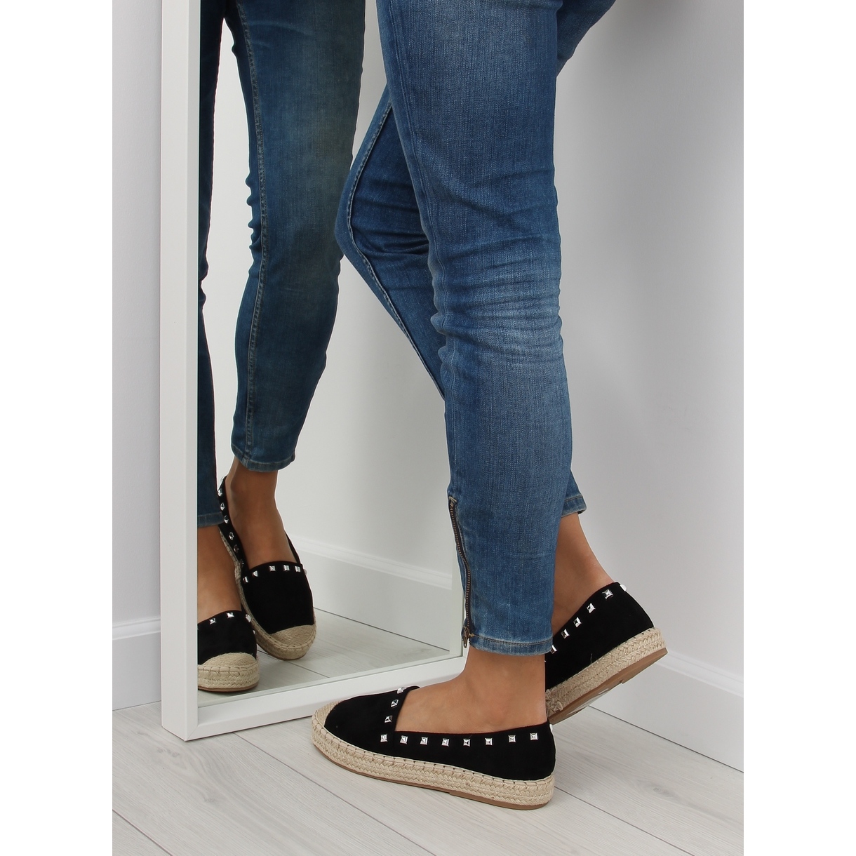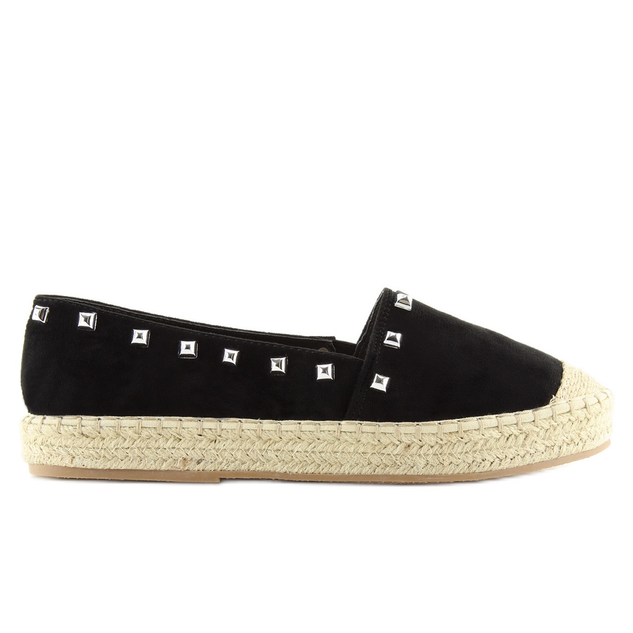Svarta espadrillor för kvinnor 99-17 svarta är ett utmärkt val för kvinnor som värdesätter stil och komfort. Dessa original espadrillor utmärks av sin moderiktiga design, berikad med iögonfallande nitar som ger dem karaktär och uttrycksfullhet. Det ekologiska mockalädret som skorna är gjorda av säkerställer inte bara ett elegant utseende, utan också komforten att bära.