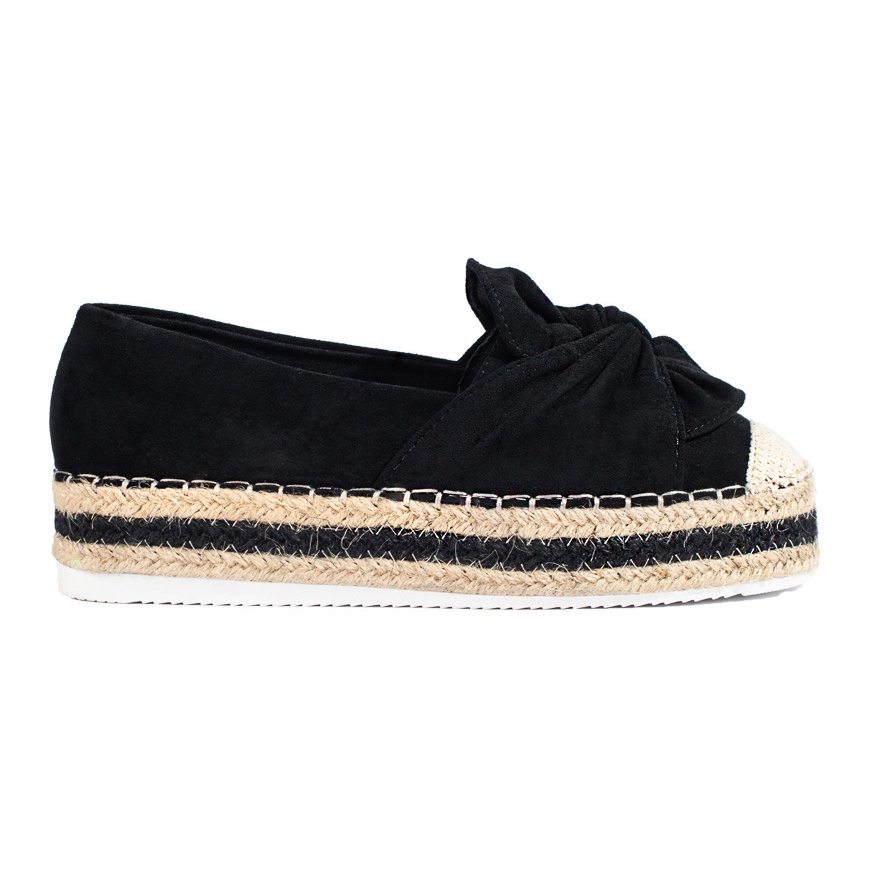 Detaljer: Svarta espadrillor i mocka på plattformen med rosett från Shelovet