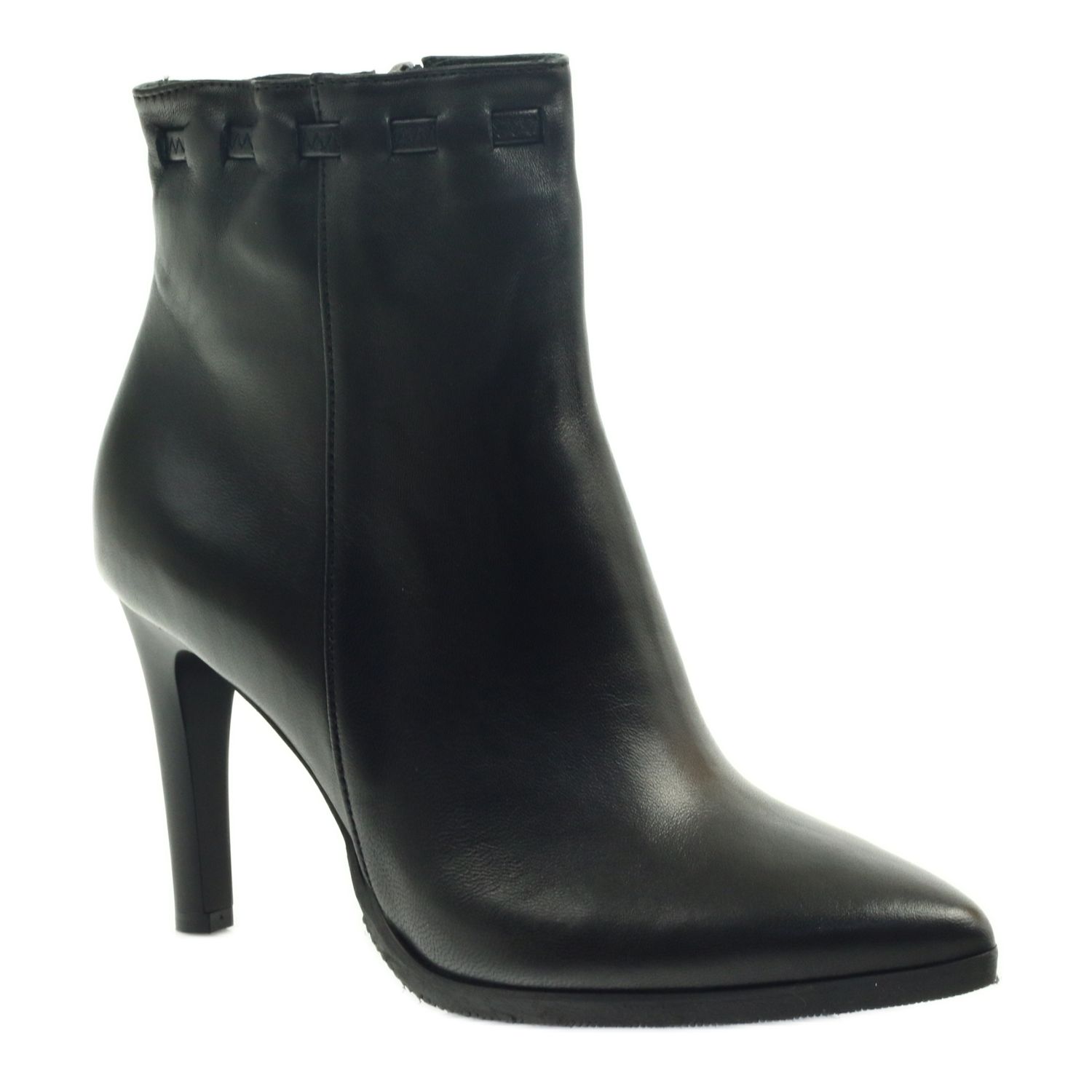 Upptäck de unika svarta stilettstövlarna Espinto 256, som är den perfekta kombinationen av elegans och komfort. Dessa fashionabla skor är helt gjorda av naturligt narvskinn och gläder sig inte bara med sitt utseende, utan också med sin noggranna finish. Deras insida är fodrad med naturligt läder, och en bekväm innersula av mjuk skofleece gör att du känner dig bekväm även efter en lång dag på jobbet.