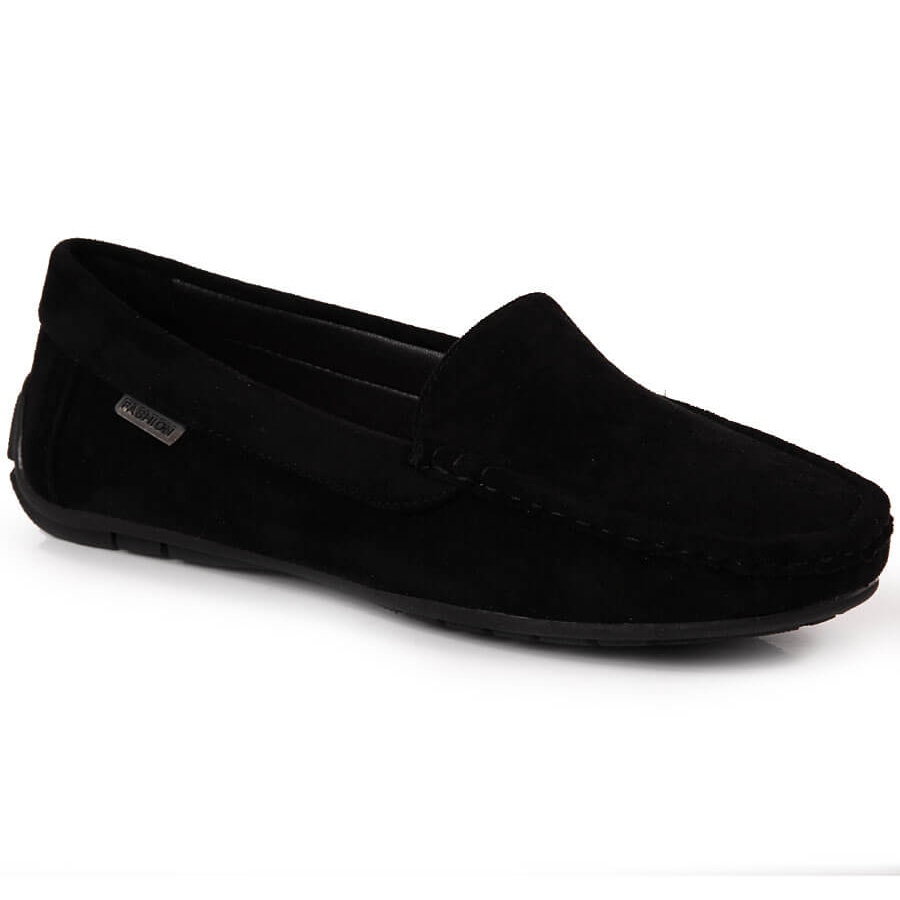 Eleganta, svarta evento -loafers är ett idealiskt förslag för kvinnor som värderar komfort och tidlös stil. Tillverkad av högkvalitativ ekologisk mocka hud, de kombinerar en avslappnad look med att bära komfort - en mjuk, naturlig innersula och en flexibel, syntetisk sula säkerställer trevlig användning under dagen.