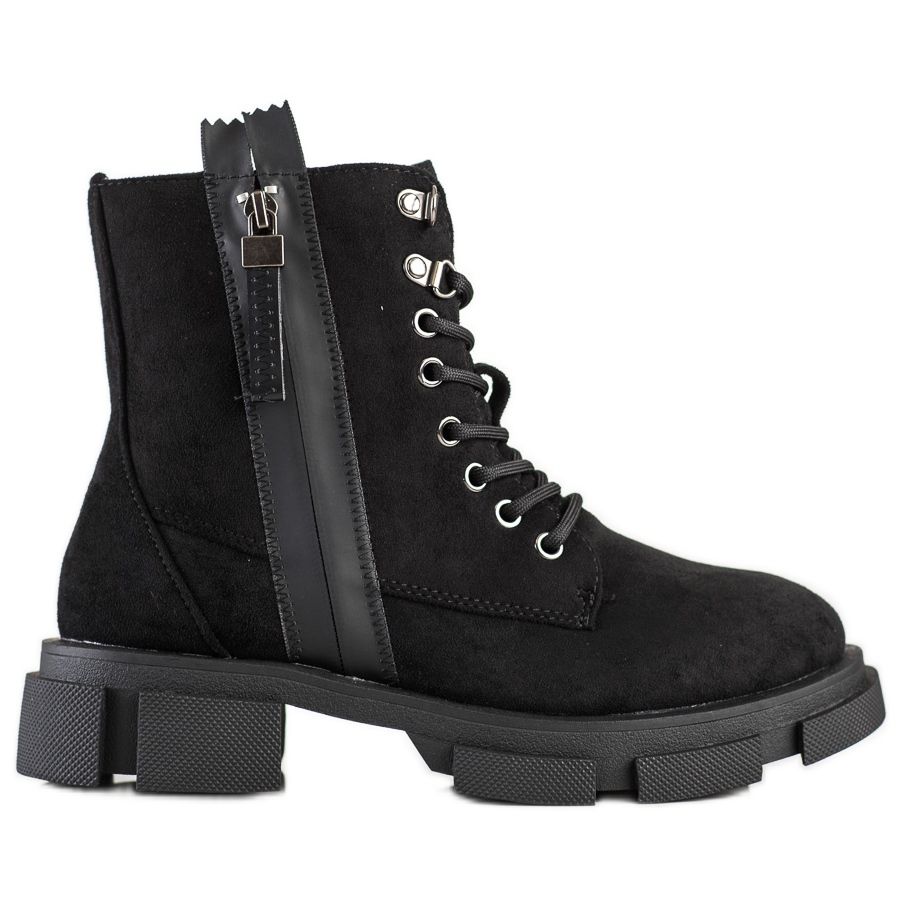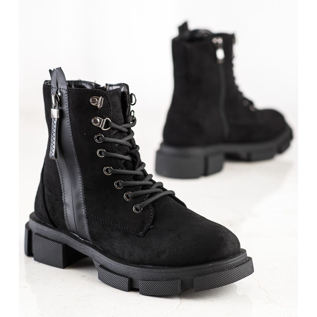 Stövlarna är gjorda av högkvalitativ mockaimitation och är slitstarka och attraktiva i utseende. Den dekorativa dragkedjan ger dem karaktär, vilket gör att de lätt passar in i varje kvinnas avslappnade stil. Tack vare dragkedjan och extra snörning är skorna lätta att ta på och passar perfekt till foten.
