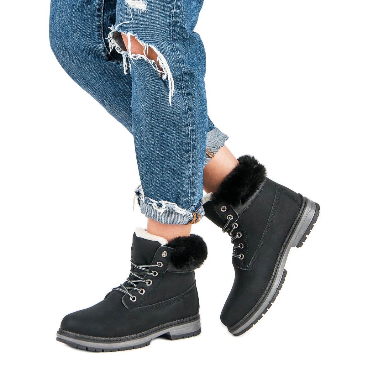 Stövlarnas insida är isolerad med mjuk päls, vilket säkerställer behaglig värme även under de kallaste dagarna. Den svarta färgen betonar deras universalitet - du kan enkelt kombinera dem med olika stilar, både avslappnade och mer eleganta.
