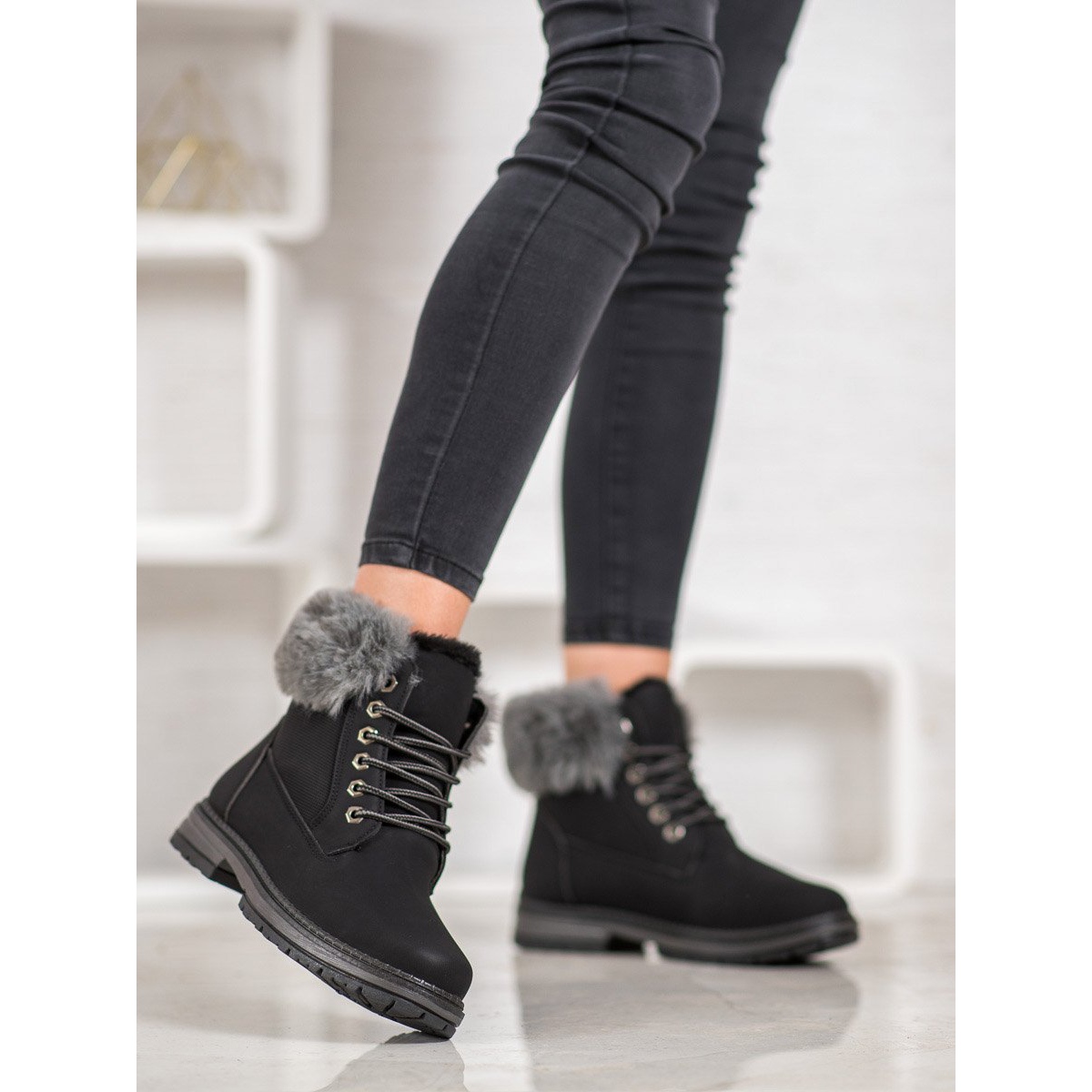 Upptäck elegans och komfort i svarta SHELOVET-stövlar med päls, som är det perfekta komplementet till din höst-vintergarderob. Dessa snygga skor är gjorda av högkvalitativt konstläder och erbjuder inte bara ett moderiktigt utseende, utan också praktiskt. Deras snörning ovanför ankeln säkerställer perfekt passform och komfort, och isoleringen gör dem perfekta för kallare dagar.
