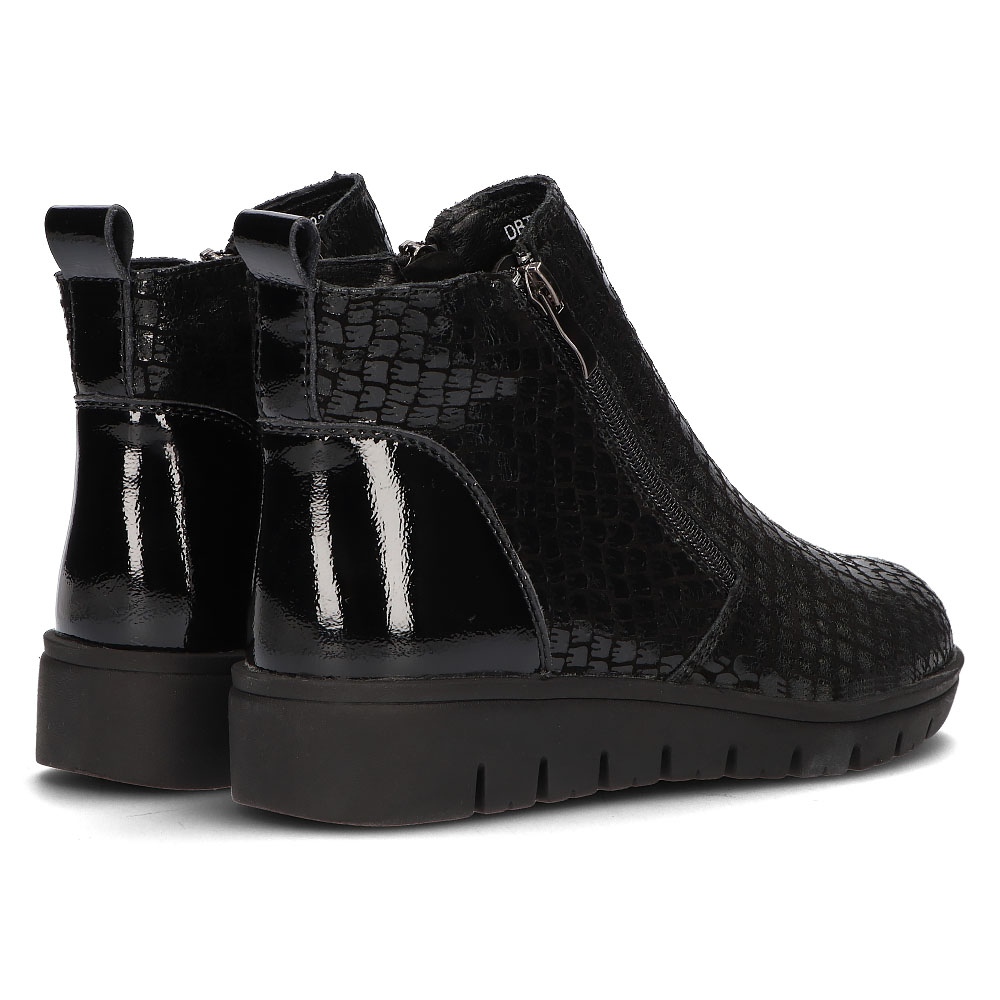 Stövlarna är gjorda av naturläder av högsta kvalitet och kännetecknas av en rund tå och en bekväm dragkedja, vilket gör dem lätta att ta på. Ankelhöjden och den optimala ovandelen med en omkrets på 29 cm säkerställer en perfekt passform till foten, och komforten med isolering gör att du kan bära dem under kallare dagar.