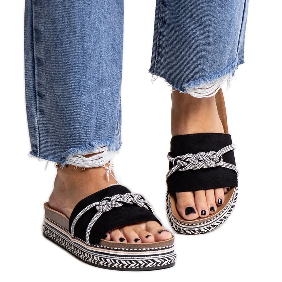 Dessa flip flops är ett måste i sommarkollektionen av alla fashionabla kvinnor. Låt sommaren vara full av stil och elegans med svarta klaffar dekorerade med Kamilians zirkoner!
