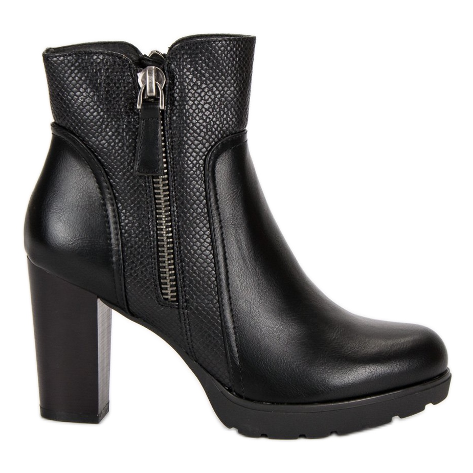 Den svarta färgen på stövlarna är en klassiker som aldrig går ur mode och passar perfekt till både eleganta och avslappnade stilar. Tack vare deras originaldetaljer, som en silverdragkedja eller en insats som imiterar ormskinn, kommer varje kvinna att känna sig speciell i dem.