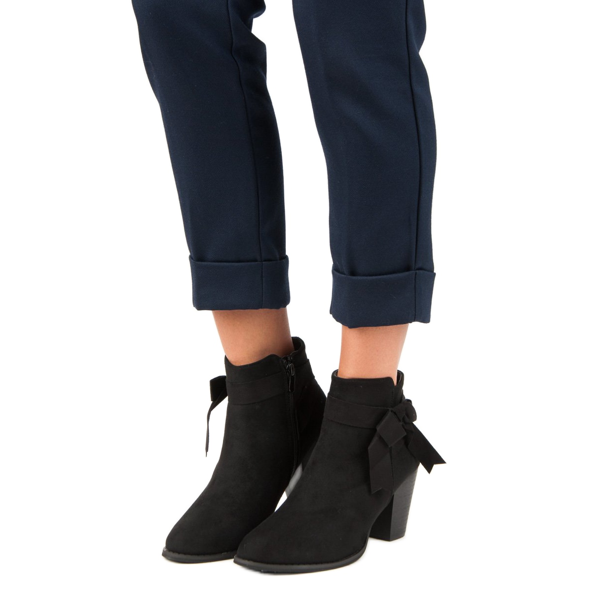 Stövlarna är gjorda av högkvalitativ ekologisk mocka, vilket säkerställer exceptionell hållbarhet och estetiskt utseende. En charmig rosett placerad på sidan av ovandelen ger dem en unik karaktär, vilket gör dem till det perfekta komplementet till alla stylingar. Deras eleganta svarta färg gör att de matchar nästan allt - från casual set till kvällsoutfits.