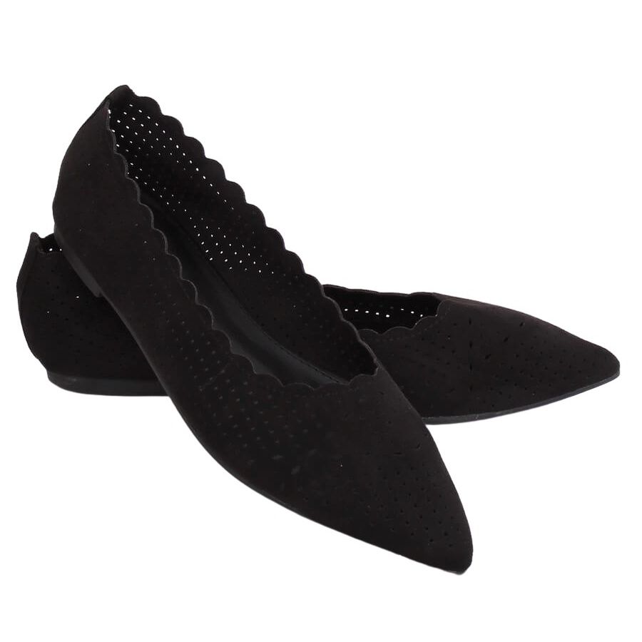 Genombrutna svarta ballerinor NK18P Black är det perfekta valet för kvinnor som värdesätter elegans och komfort varje dag. Tillverkade av ekologisk mocka, dessa formfulla balettlägenheter med en delikat spetsig tå är en kombination av klassisk och modern stil. Det genombrutna mönstret tillför lätthet och gör dem unika och originella.