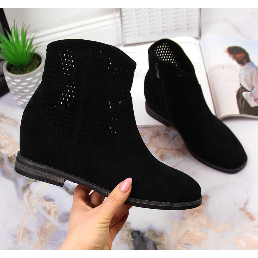 Information: S.Barski Svarta genombrutna kilstövlar för kvinnor från S. Barski