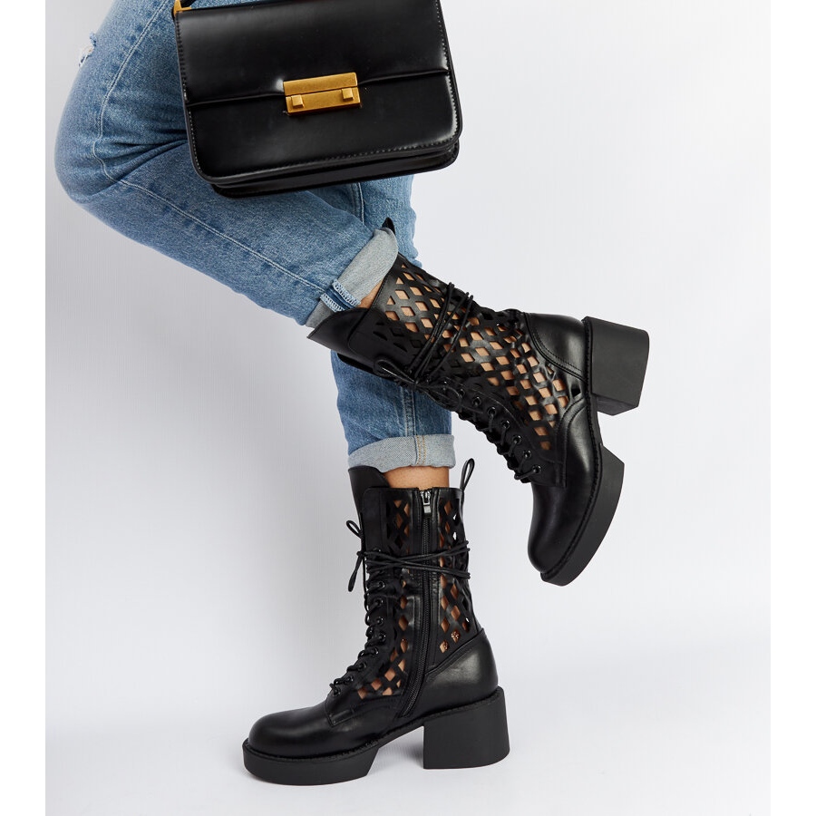 Detaljer: Svarta genombrutna Visalia stövlar med hög klack