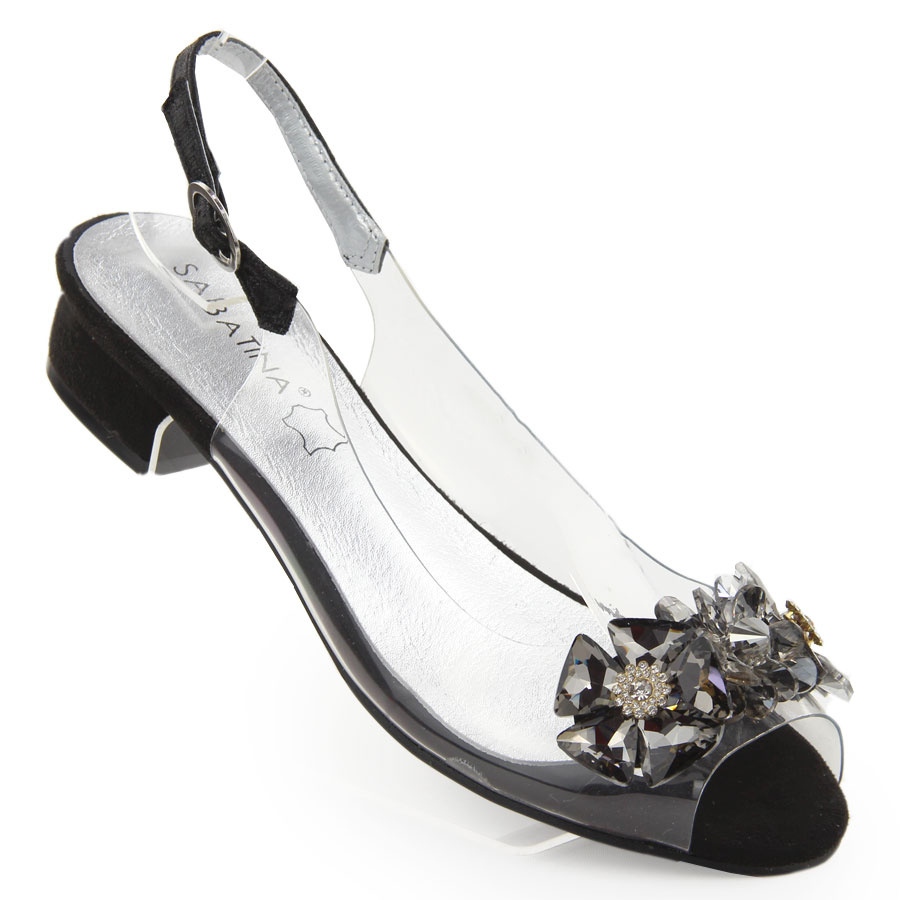 Sabatina Svarta genomskinliga platta sandaler med stenar från Sabatina