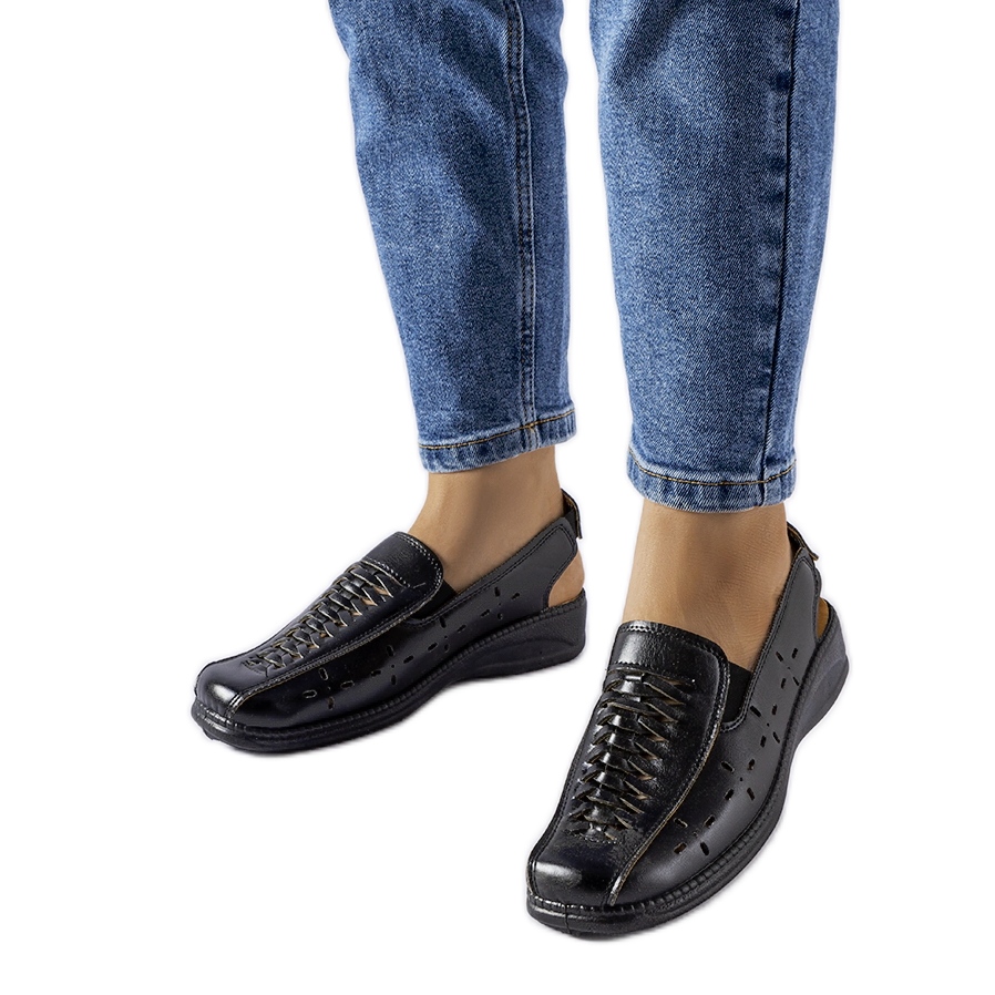 Eleganta och bekväma glafi -sandaler är det perfekta valet för sommaren. Övre övre läder i OpenWork -läder säkerställer andningsförmåga, och glidstrukturen med ett flexibelt band garanterar en snabb och viss passform. Det klassiska, tidlösa svarta snittet är bra för både vardagliga och mer eleganta sommarstyliseringar.