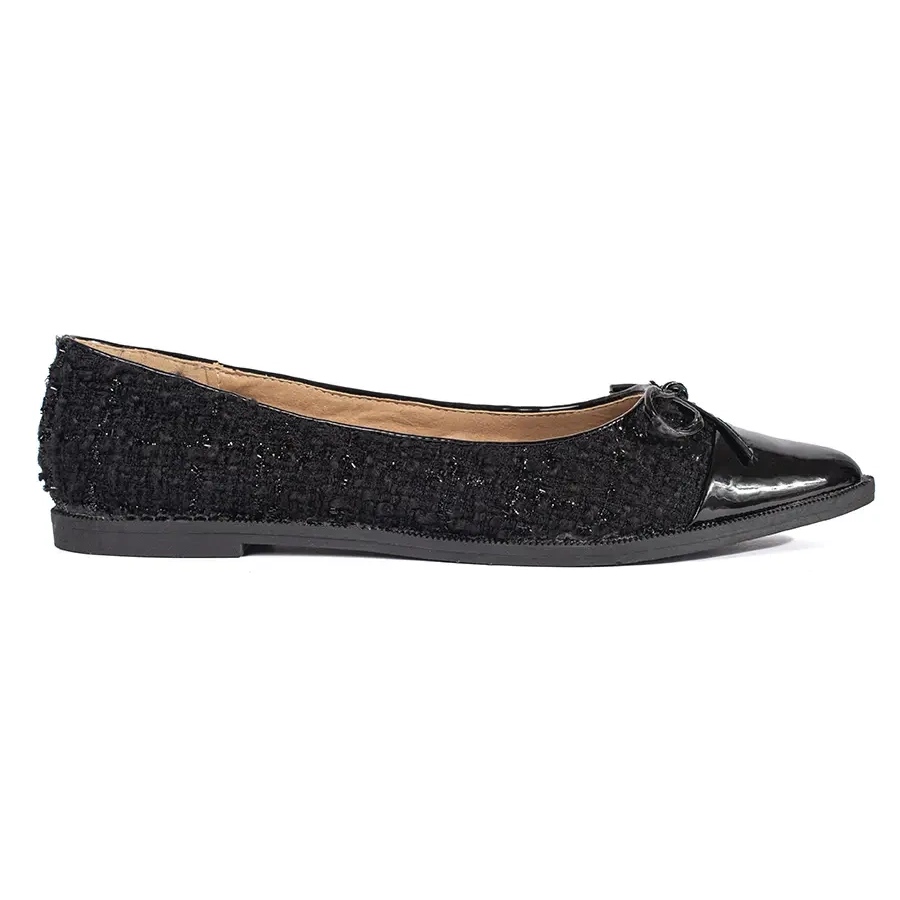Ballerinas är gjorda av syntet av hög kvalitet, vilket gör dem hållbara och enkla att bry sig. Den ursprungliga svarta färgen ger dem stil, och glitter accenten ger dem lite glöd, perfekt för varje tillfälle - både dagligen och för mer formella utgångar. Bågen som placeras på framsidan av skon betonar deras romantiska karaktär, vilket gör dem extremt feminina.