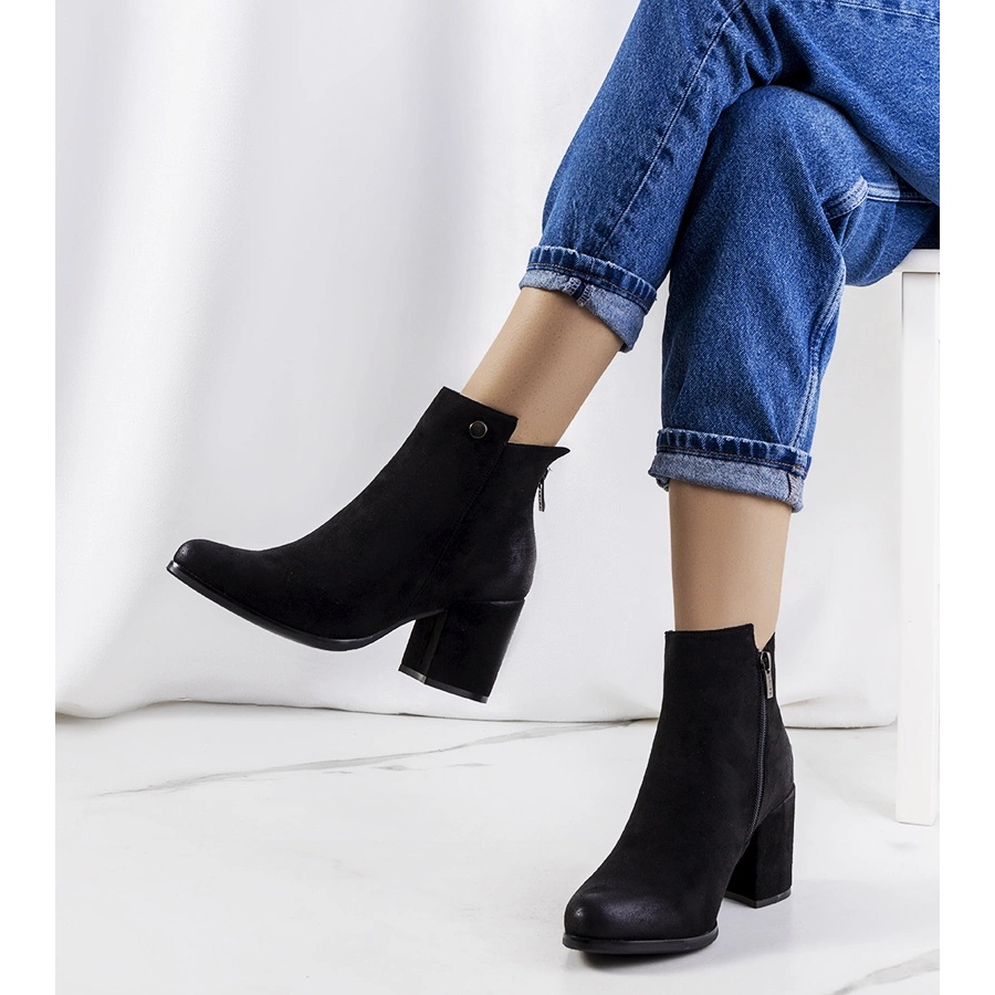 Eleganta, universella stövlar gjorda av ekologiskt mocka läder. En modell med en tidlös, smal snitt (Spitz Nose) inbäddad på ett stabilt stolpe (block) med en höjd av 7 cm, når för vristen - idealisk för vardagliga och kvällstyliseringar.