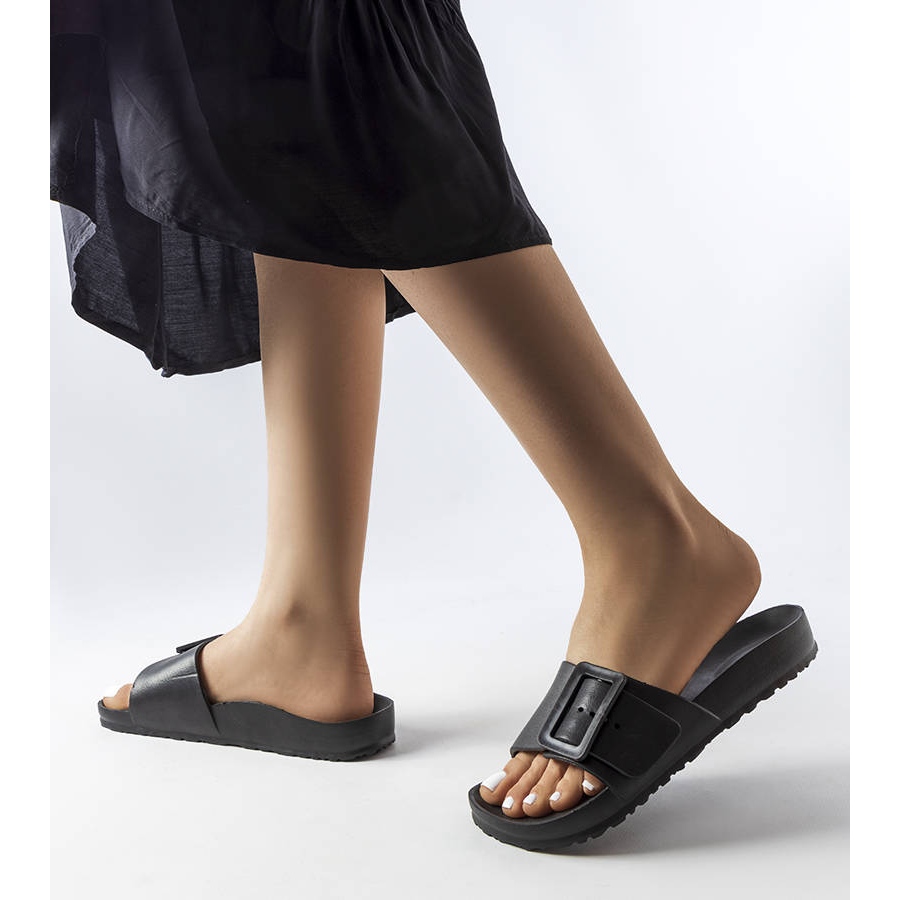 Vänta inte och gör dig bekväm på sommardagarna med svarta gummiflipflops med Nelm-spänne!