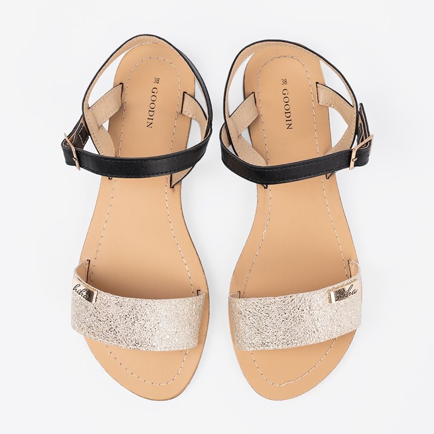 Information: Goodin Svarta gyllene kvinnors platta sandaler