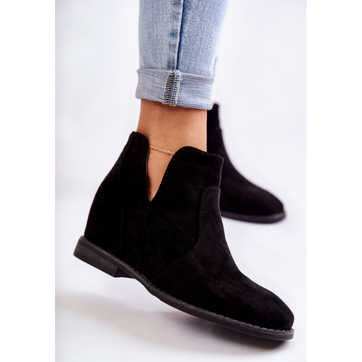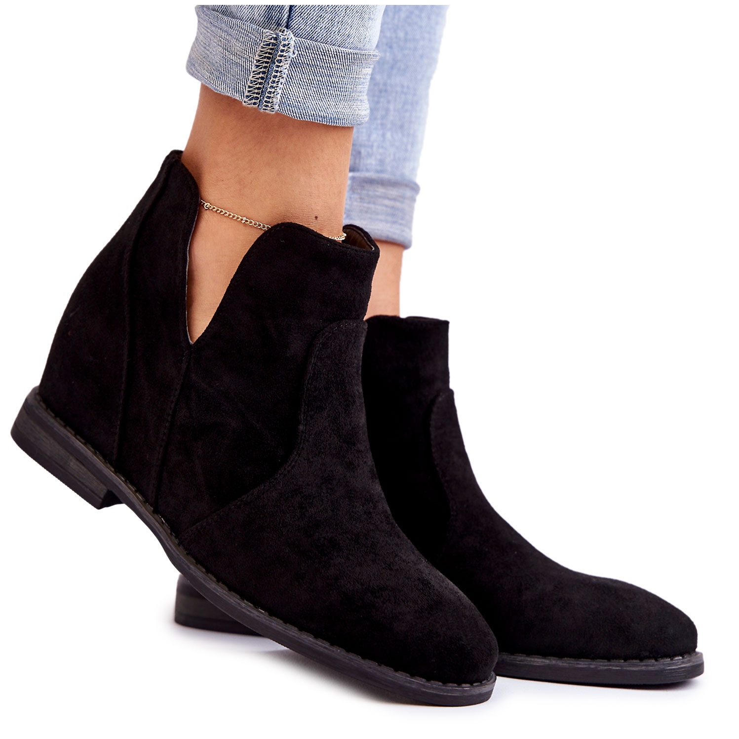 S.Barski S.Barski Svarta Henriette Stövlar i mocka med utskärningar på en platt klack