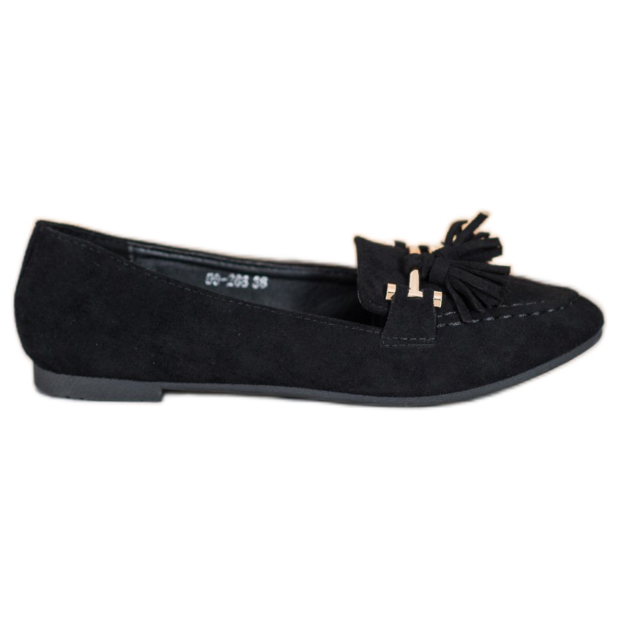Vi presenterar Nio Nio Black Lords med fransar - den perfekta kombinationen av klassiskt, elegans och originalitet. Dessa damherrar, gjorda av ekologiskt mockaläder av hög kvalitet, är ett perfekt val för alla tillfällen. Deras tidlösa svarta färg gör att de passar perfekt med många stilar, från vardagliga till mer formella.