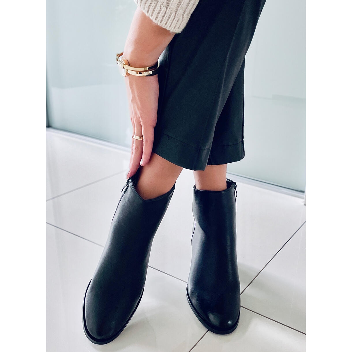 Utrustade med en rak 7,5 cm klack ger dessa ankelstövlar inte bara ett vackert utseende, utan också stabilitet när du går. Lätt rundade tår gör dem subtila, och den praktiska fästningen på sidan av ovandelen gör dem lättare att ta på, vilket kommer att uppskattas av varje upptagen kvinna.
