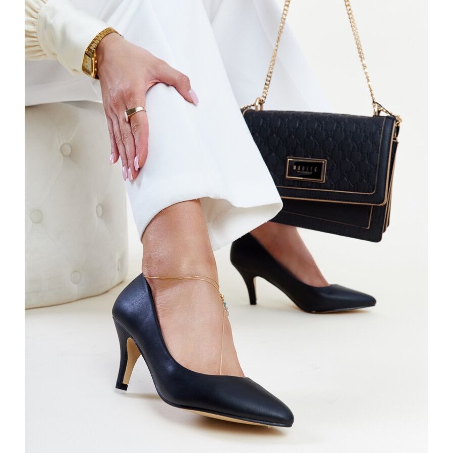 Svarta Hafa högklackade skor med läderinlägg är ett perfekt val för varje kvinna som letar efter en kombination av elegans och komfort. Dessa slip-on klackar är gjorda av högkvalitativt konstläder och har en subtilt spetsig tå för en sofistikerad look.