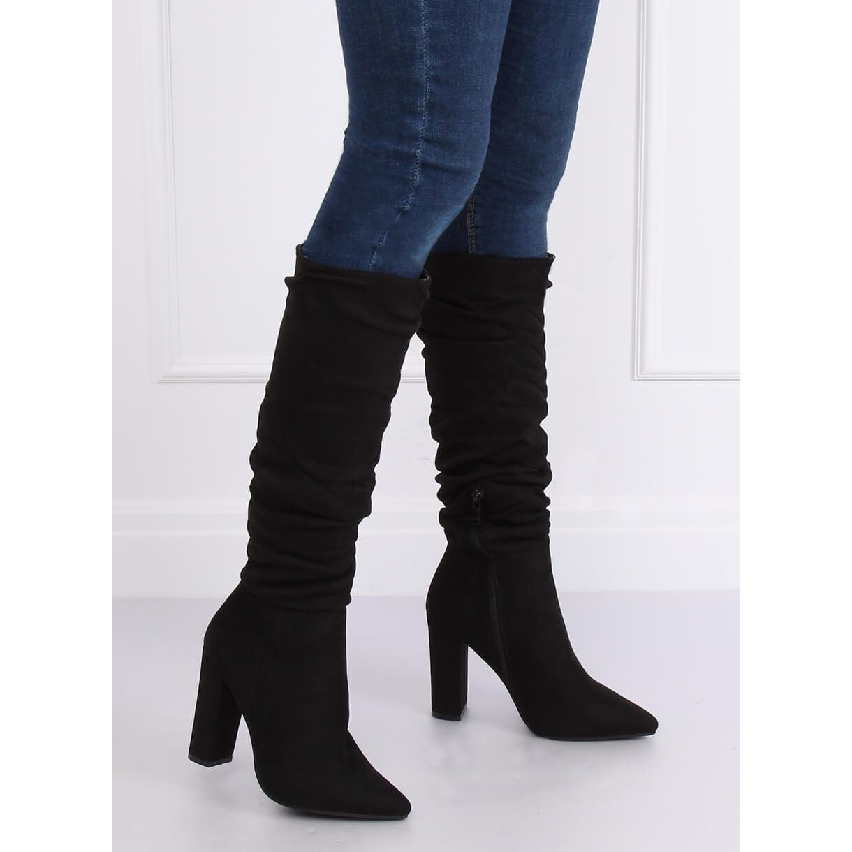NC885 Svarta högklackade stövlar är ett perfekt val för kvinnor som vill kombinera elegans med komfort. Dessa mockastövlar kännetecknas av en fashionabelt volang ovandel, som ger karaktär och subtilitet. En stabil stolpe med en höjd på 10,5 cm slanker benen perfekt och framhäver deras skönhet och femininitet. De delikat spetsiga tårna gör att foten ser graciös ut, vilket gör dem till en idealisk lösning för olika tillfällen - från vardagsstyling till eleganta tillfällen.