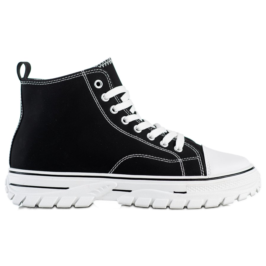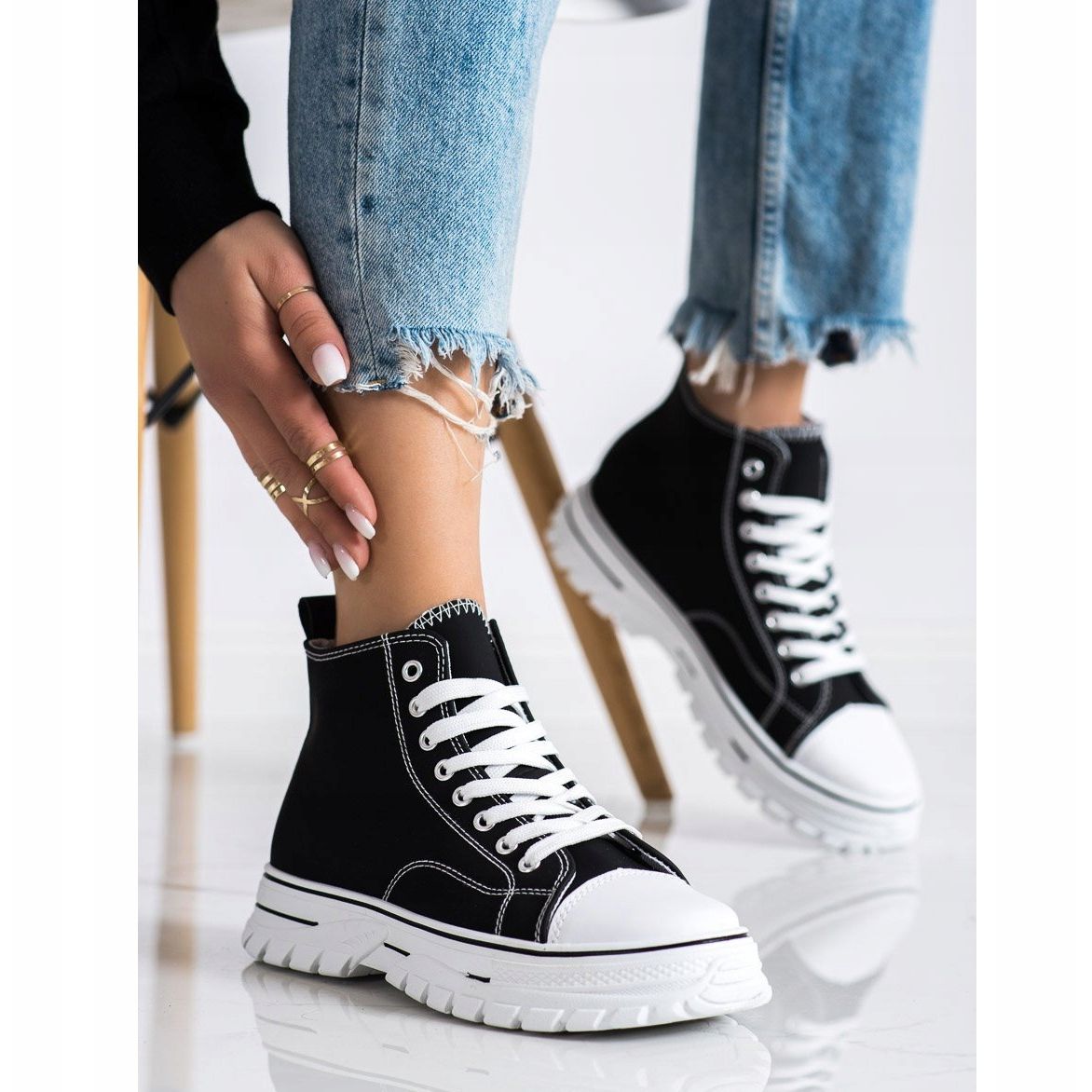 Upptäck komforten och stilen hos svarta high-top SHELOVET sneakers, perfekta för alla tillfällen. Dessa fashionabla damskor njuter av sin minimalistiska design, som passar perfekt in i den sportiga och avslappnade karaktären. Tillverkade av högkvalitativt läderimitation ger de inte bara estetik, utan också hållbarhet, så de kommer att följa dig under lång tid.