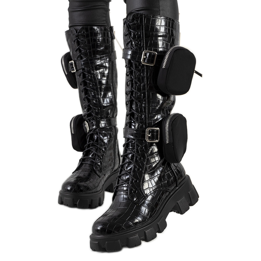 Detaljer: Svarta höga stövlar med Peralta-påse