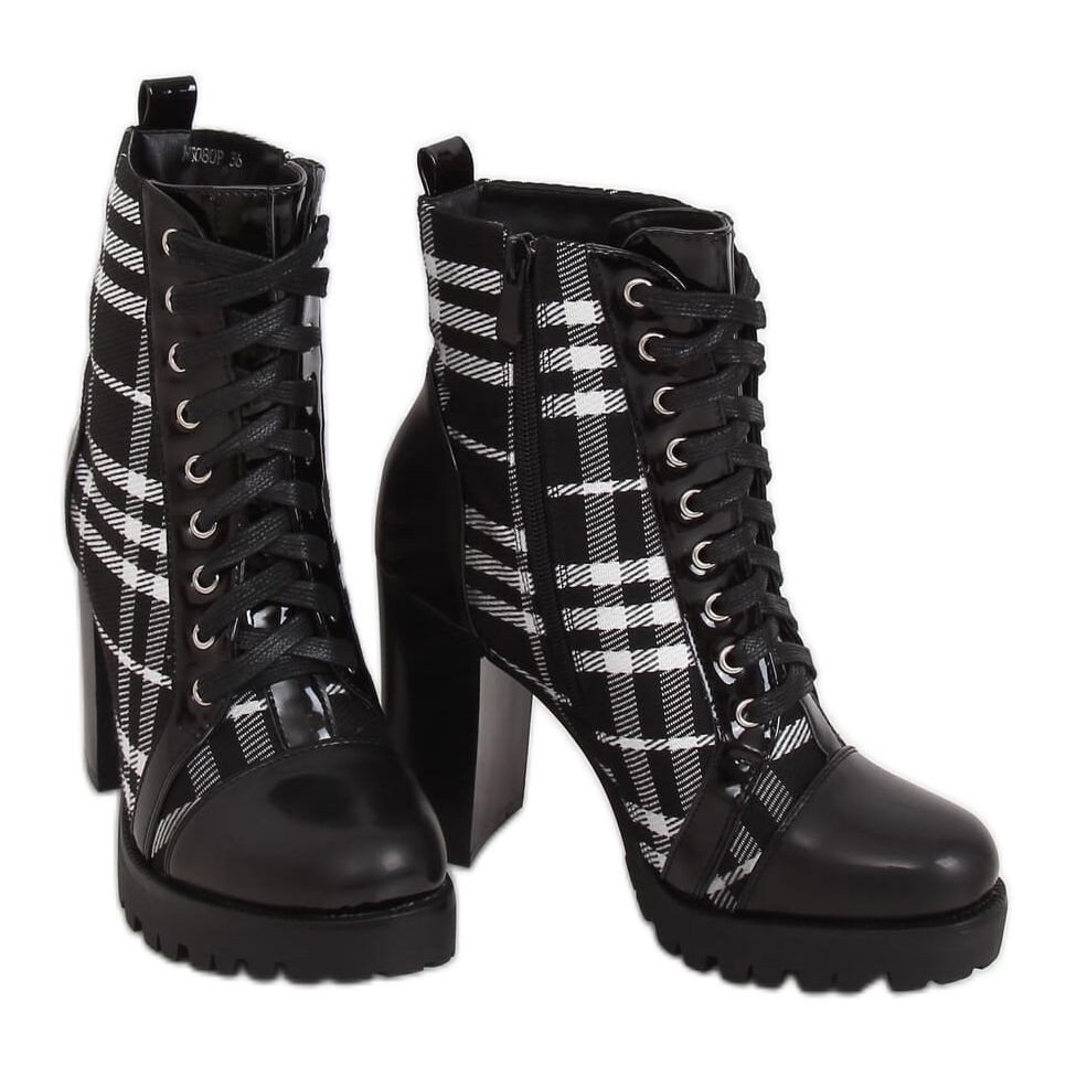 Vi presenterar unika svartrutiga högklackade ankelboots NS080P Black - ett utmärkt val för kvinnor som värdesätter både elegans och komfort. Dessa snygga stövlar har en 9,5 cm klack och en 2 cm hög plattform, vilket ger dem en moderiktig karaktär och samtidigt säkerställer komfort när de bärs.