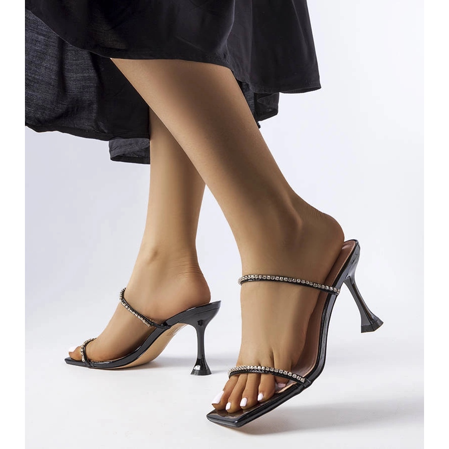 Detaljer: Svarta högklackade sandaler med Paso strass