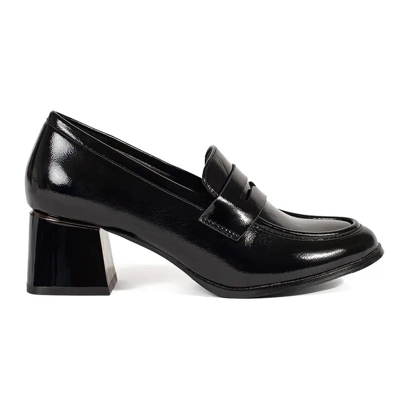 En funktion som skiljer dessa skor är en inbyggd, styvad häl, som säkerställer stabilitet och komfort att bära hela dagen. Tillverkad av ekologiskt läder av hög kvalitet, både den yttre beläggningen och insatsen är miljövänliga och garanterar samtidigt ett estetiskt utseende. En rund näsa i kombination med en lackerad finish ger dem klass och stil.