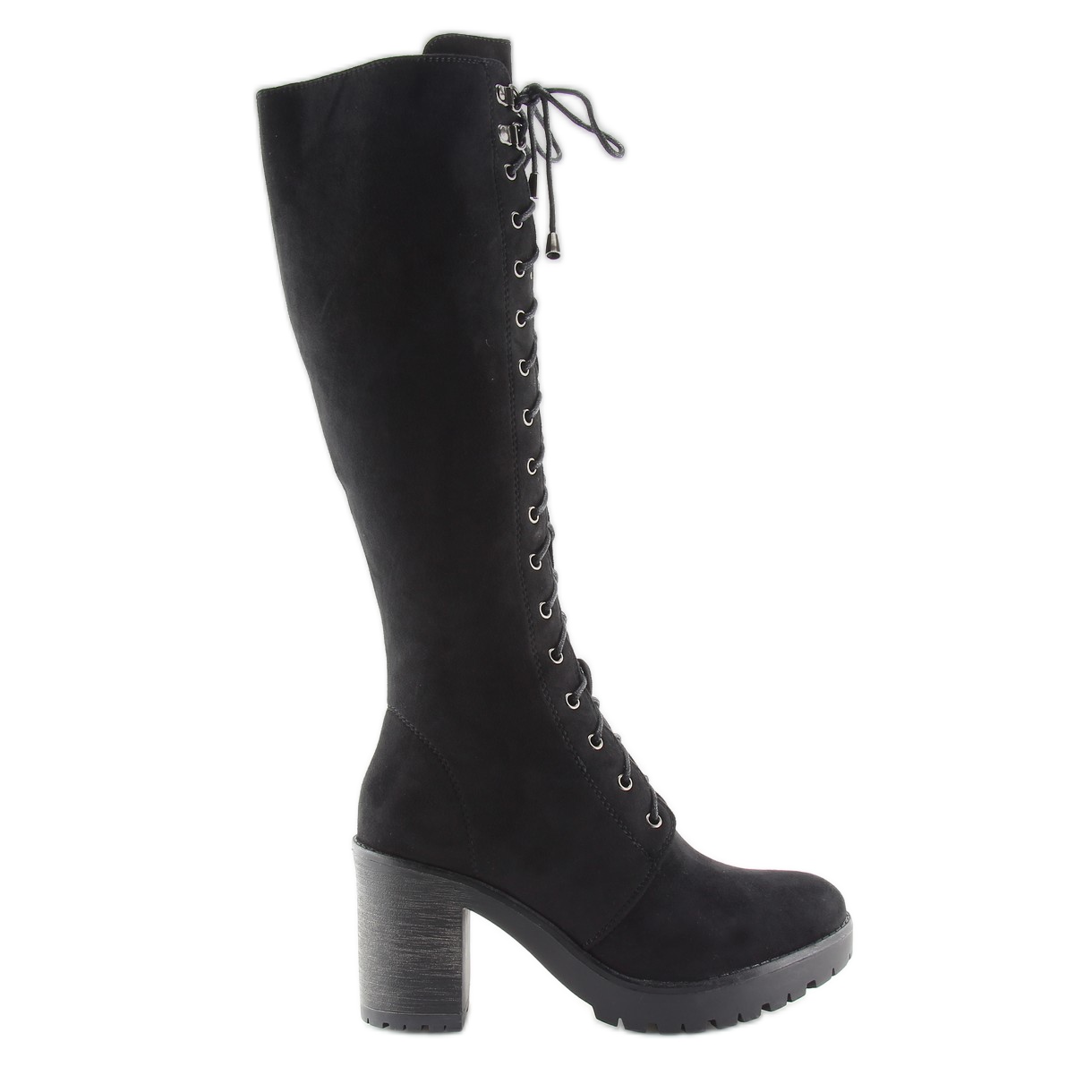 Den höga, knälånga ovandelen framhäver figurens fördelar och passar till många typer av kläder, från kjolar till jeans. Svarta stövlar kombinerar funktionalitet och moderiktig design, vilket gör dem till ett idealiskt val för moderna kvinnor som värdesätter både stil och komfort. Berika din skokollektion med dessa unika stövlar och njut av deras unika stil varje dag!