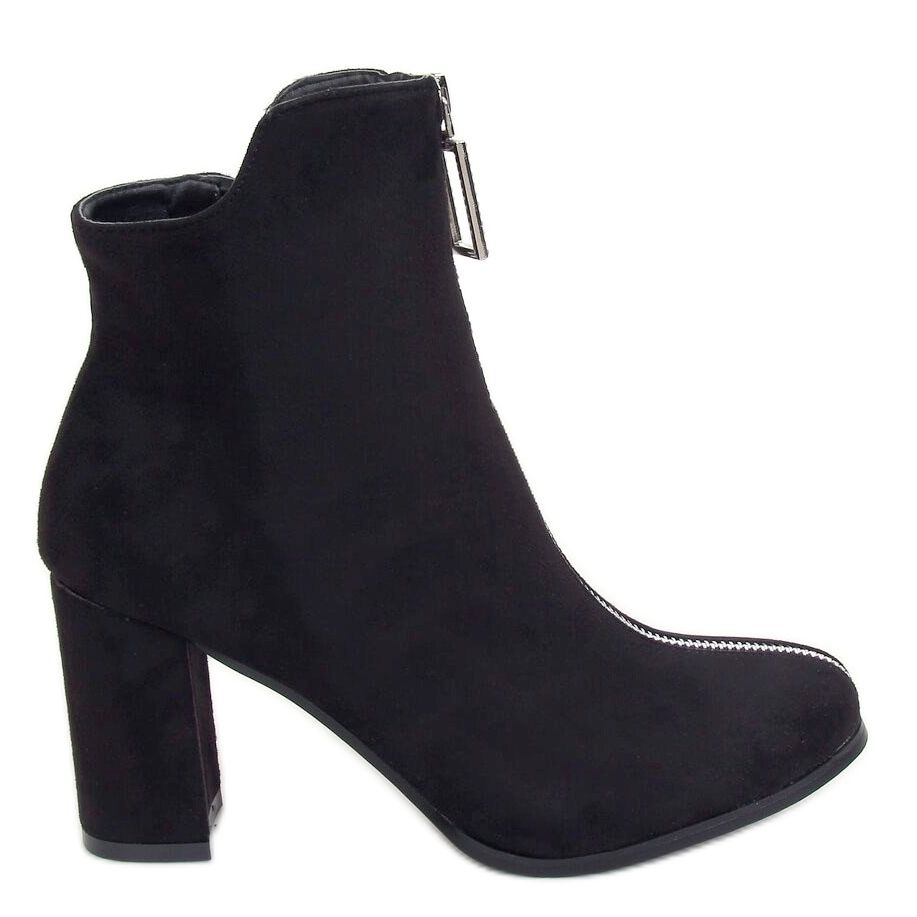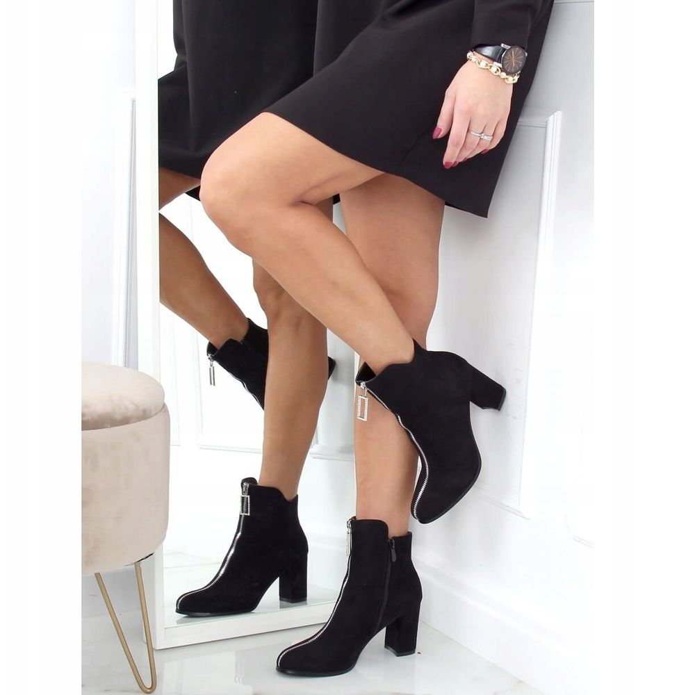Upptäck elegans och unik stil med svarta högklackade ankelboots 0-320 Svart från Inna Marki! Dessa stövlar i mocka för kvinnor, monterade på en stabil 7,5 cm hög klack, kommer att ge charm till din styling. Den klassiska svarta färgen matchar perfekt den subtila silverdragkedjan och den glänsande dekorationen som kommer att locka alla ögon.