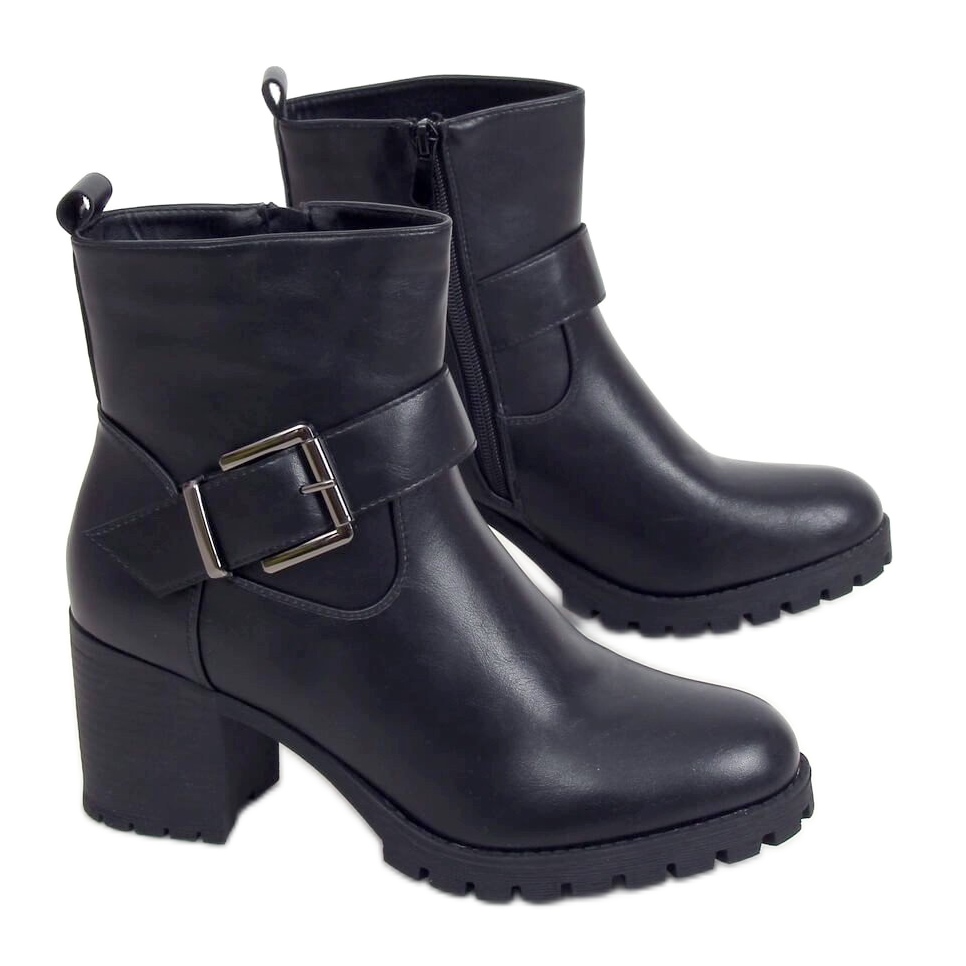 Svarta bredklackade ankelstövlar 7956-GA Svart är ett idealiskt förslag för alla kvinnor som värdesätter ett moderikt utseende och komfort att bära. Tillverkade av högkvalitativt ekologiskt läder, de drar till sig uppmärksamhet med sin eleganta, släta finish i en universell svart färg som passar perfekt till alla stylingar.