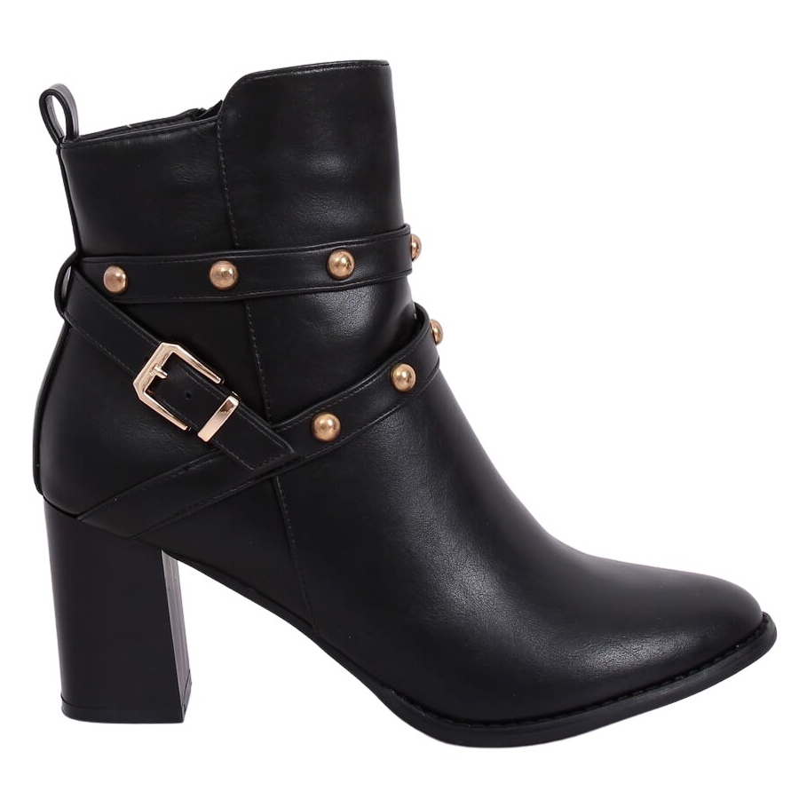 Upptäck elegans och komfort i ett! Svarta högklackade ankelboots 7968-GA Black är det perfekta valet för en modern kvinna som vill kombinera stil med komfort. Dessa välformade stövlar med en stabil 7,5 cm klack gläds åt med sitt klassiska snitt, som har berikats med originaldetaljer. Ränder dekorerade med guldnubbar ger ovandelen en unik karaktär, och den universella svarta färgen gör att de matchar vilken stil som helst, från avslappnad till mer elegant.
