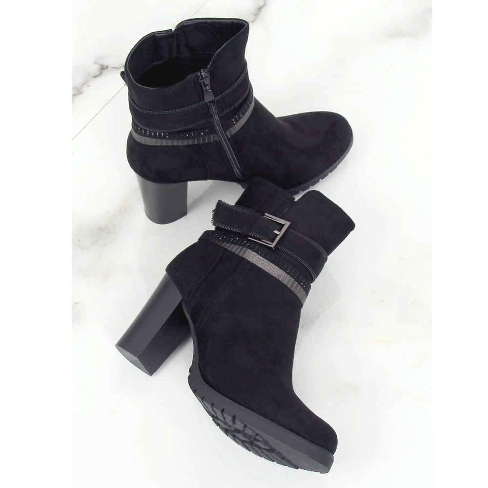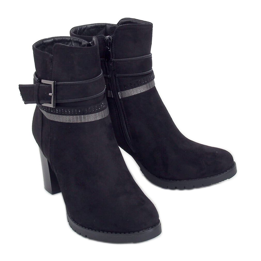 Svarta högklackade ankelboots BH126-KB Black är ett perfekt val för varje kvinna som vill kombinera elegans med komfort. Dessa snygga ankelboots dekorerade med subtila strass kommer perfekt att komplettera både vardagliga och mer formella stilar. Deras vackra, smala 8 cm häl gör att de optiskt förlänger benen, vilket framhäver den feminina figuren.