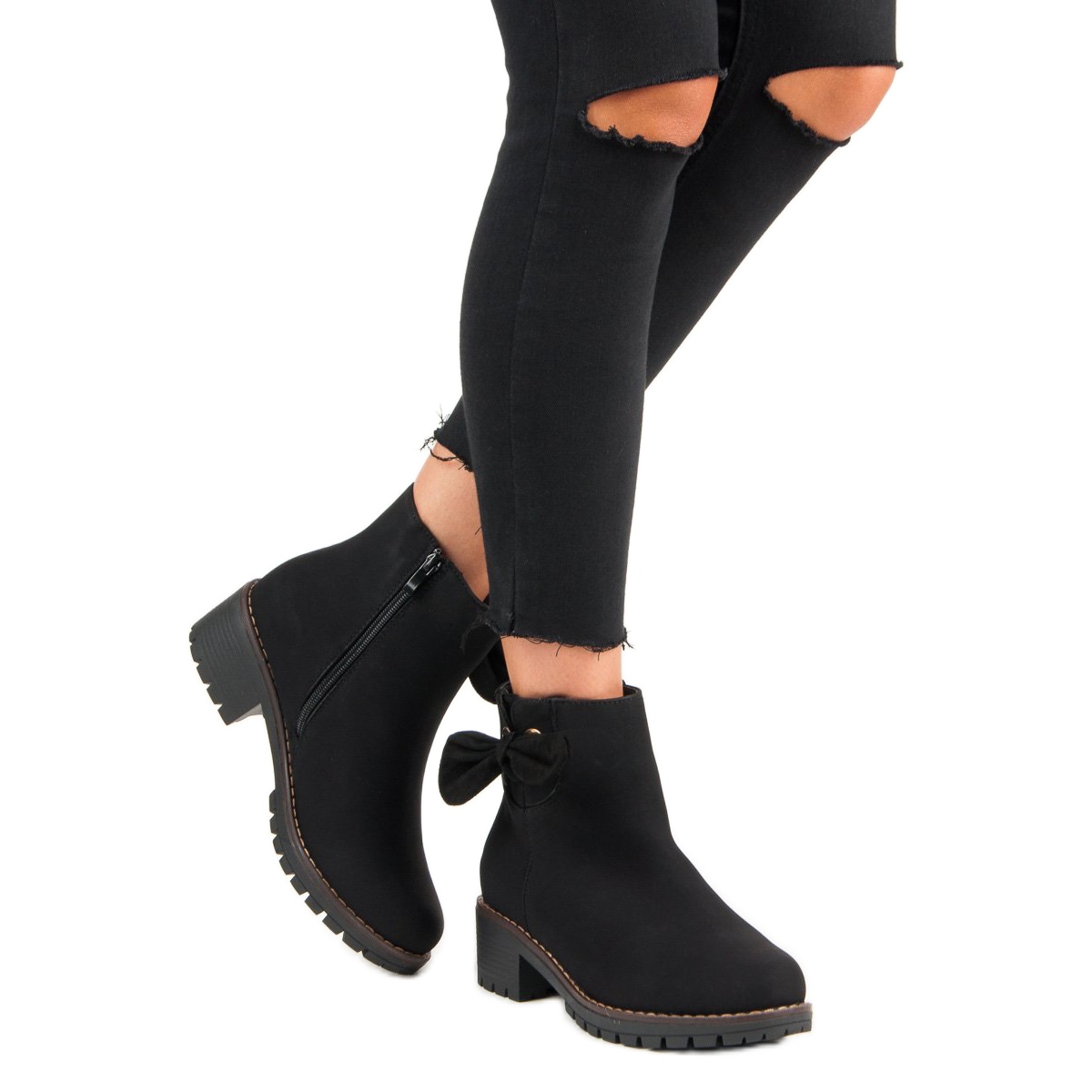 Svarta högklackade ankelboots är ett elegant och stilrent val för kvinnor som vill kombinera komfort med en moderiktig look. Dessa skor är gjorda av ekologisk svart mocka av hög kvalitet och matchar perfekt de senaste modetrenderna. Tack vare sin universalitet är de perfekta för många vardagsstilar, både för höstpromenader och vinterutflykter.