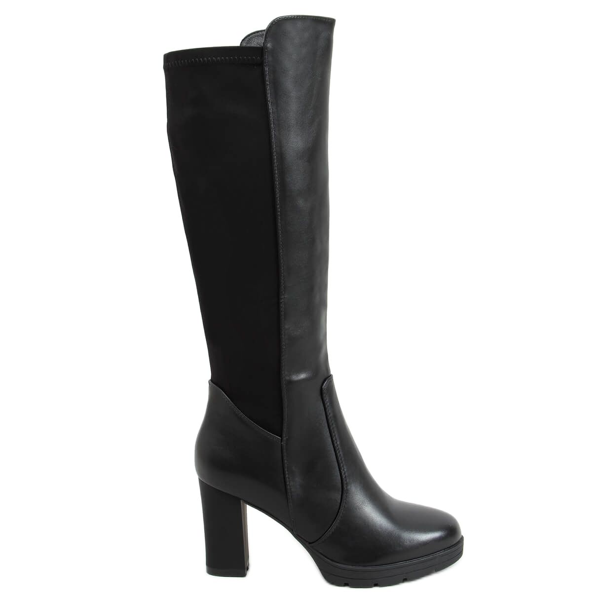 Detaljer: Svarta högklackade stövlar med en flexibel ovandel Y8607 Svart