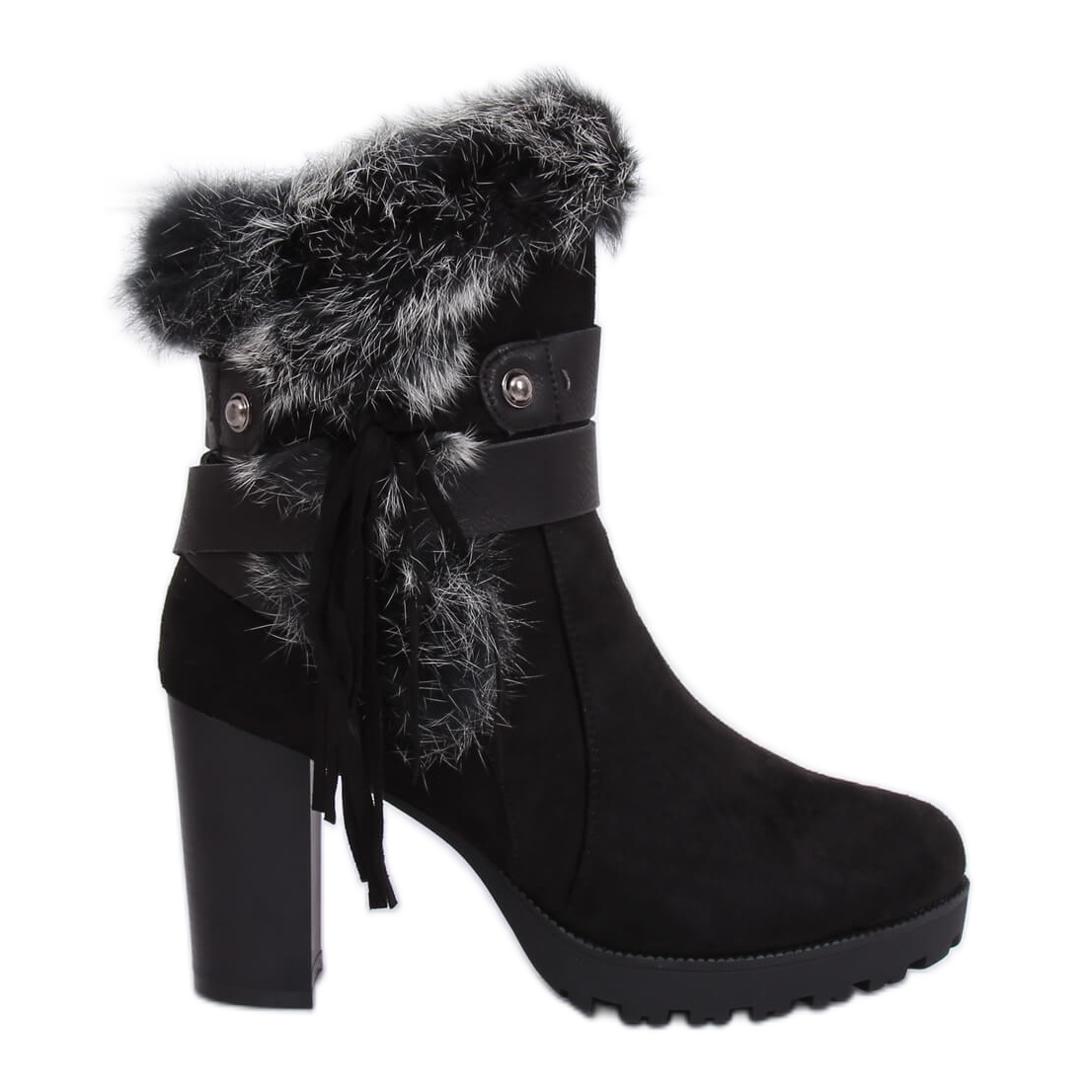 Detaljer: Svarta högklackade stövlar med päls SP05 Svart