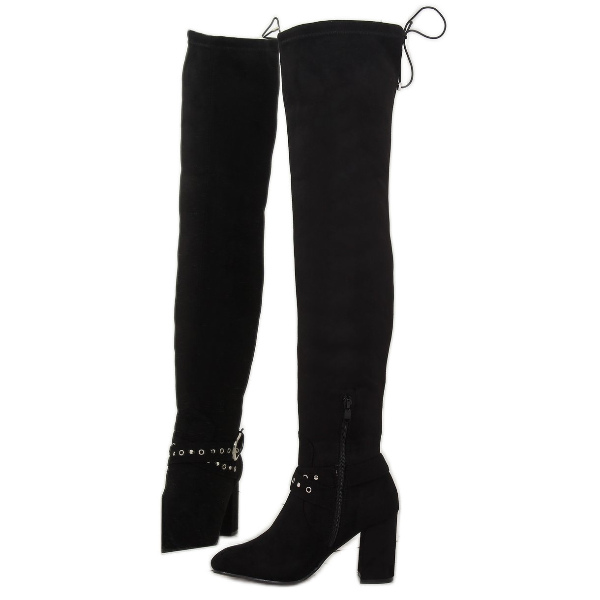 Tack vare dragkedjan på sidan av ovandelen är det extremt enkelt att ta på dem. S169 svarta musketörer kännetecknas av en fashionabel mandeltå och ytterligare strass som ger dem en unik karaktär.
