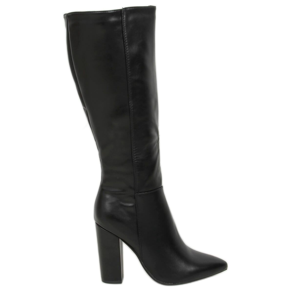 Detaljer: Svarta högklackade stövlar UK02P Svart