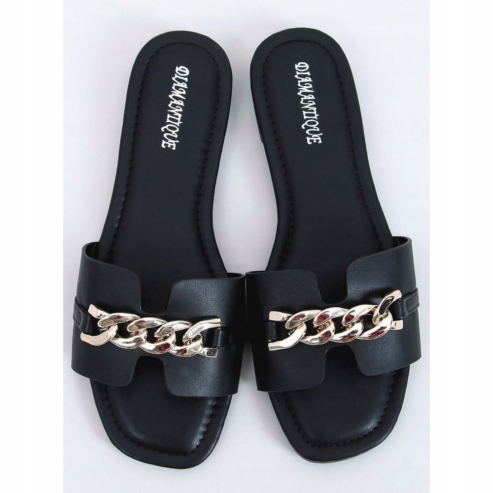 Inna marka Svarta HY23-01 Svarta tofflor med kedja
