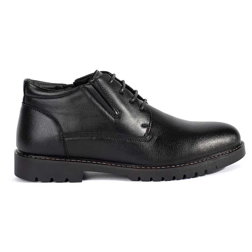Svarta stövlar har en solid sula med en slitbana som garanterar utmärkt grepp och stabilitet på olika ytor. Tack vare snörning och en extra blixtlåsfästning är det extremt enkelt och bekvämt att anpassa skor till foten.