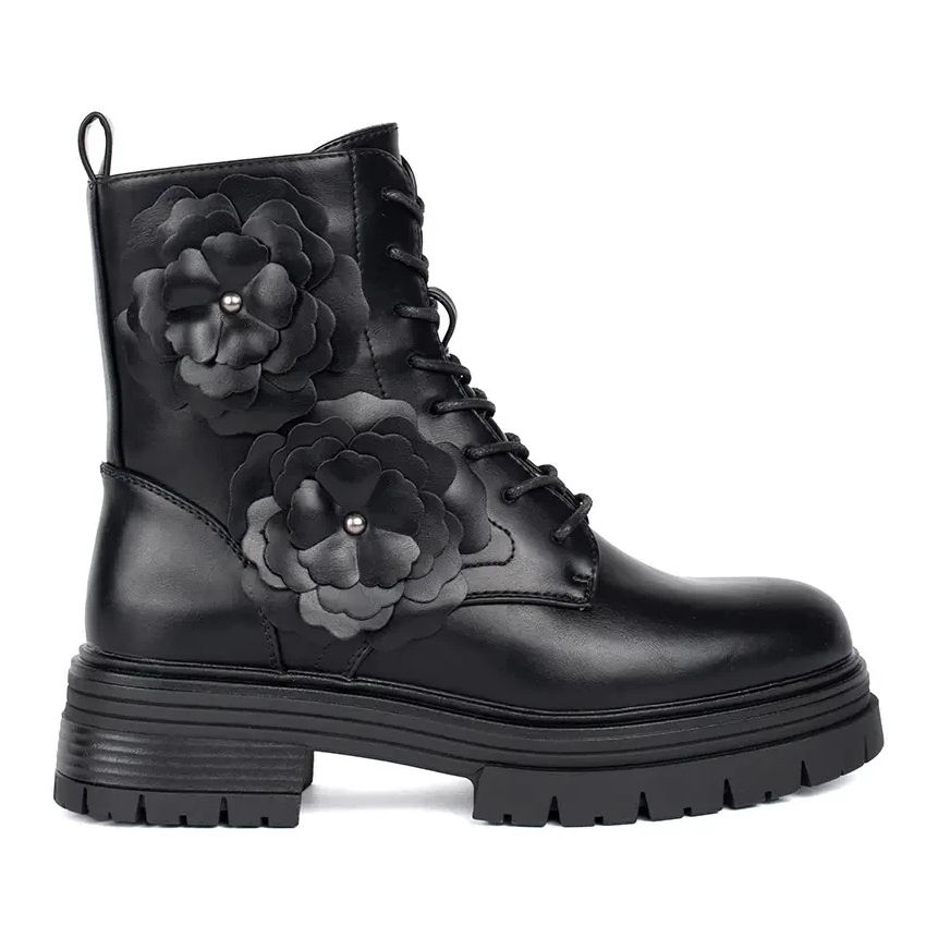 Svarta isolerade arbetare är inställda på en 4,5 cm hög plattform, vilket tillför elegans, och samtidigt är extremt bekväm. Sulan med slitbanan ger god vidhäftning på olika ytor, vilket gör dem till det perfekta valet dagligen. En rund näsa och en hög övre (15 cm) ger dem ett fashionabelt utseende, och snörning och dragkedja gör det lättare att ta på sig och ta av.
