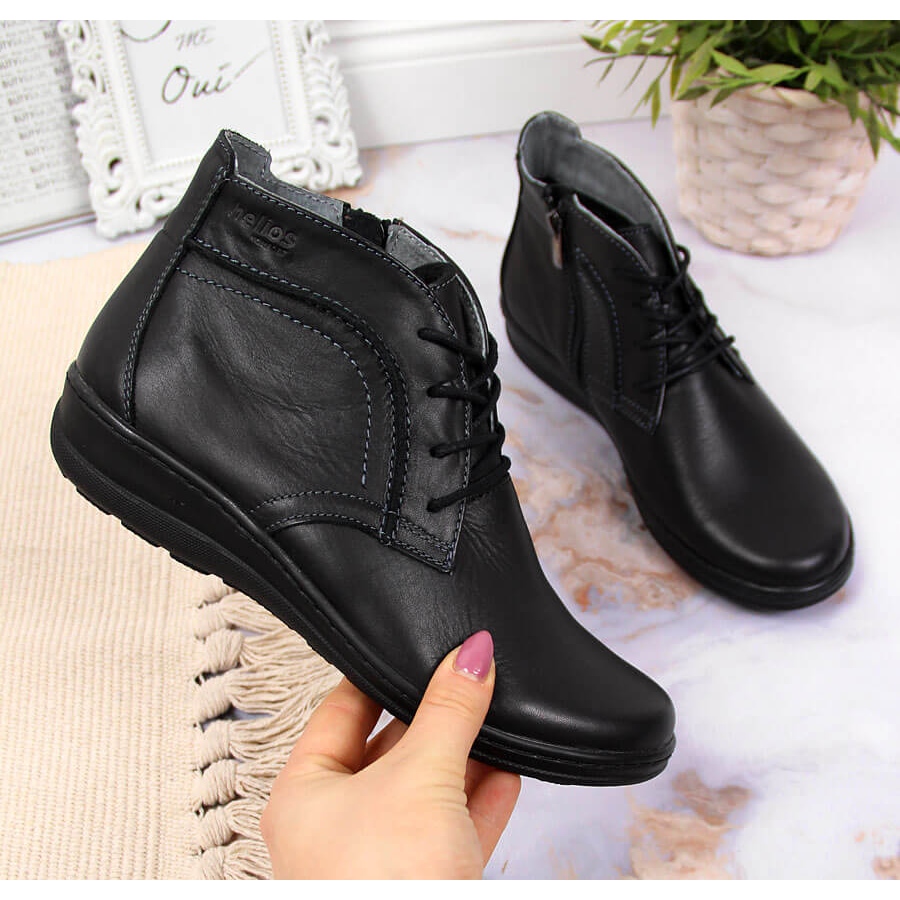 Upptäck oöverträffad komfort och stil genom att välja Helios 612-2 svarta, isolerade ankelstövlar i läder. Denna unika modell kombinerar polsk produktionskvalitet och moderiktig design som säkerligen kommer att tilltala varje kvinna. Tack vare snörningen och en praktisk dragkedja blir det extremt enkelt och bekvämt att ta av och på skorna.